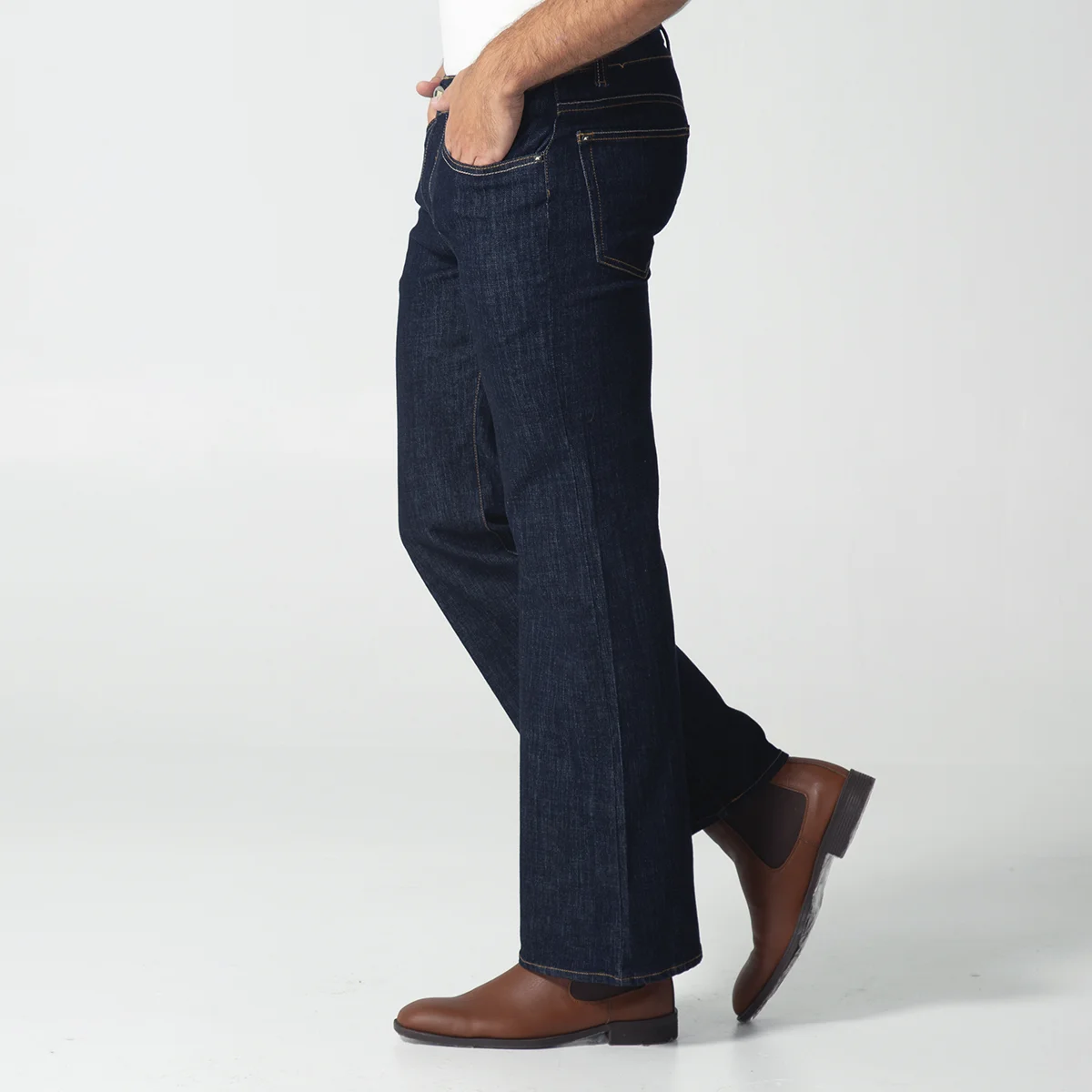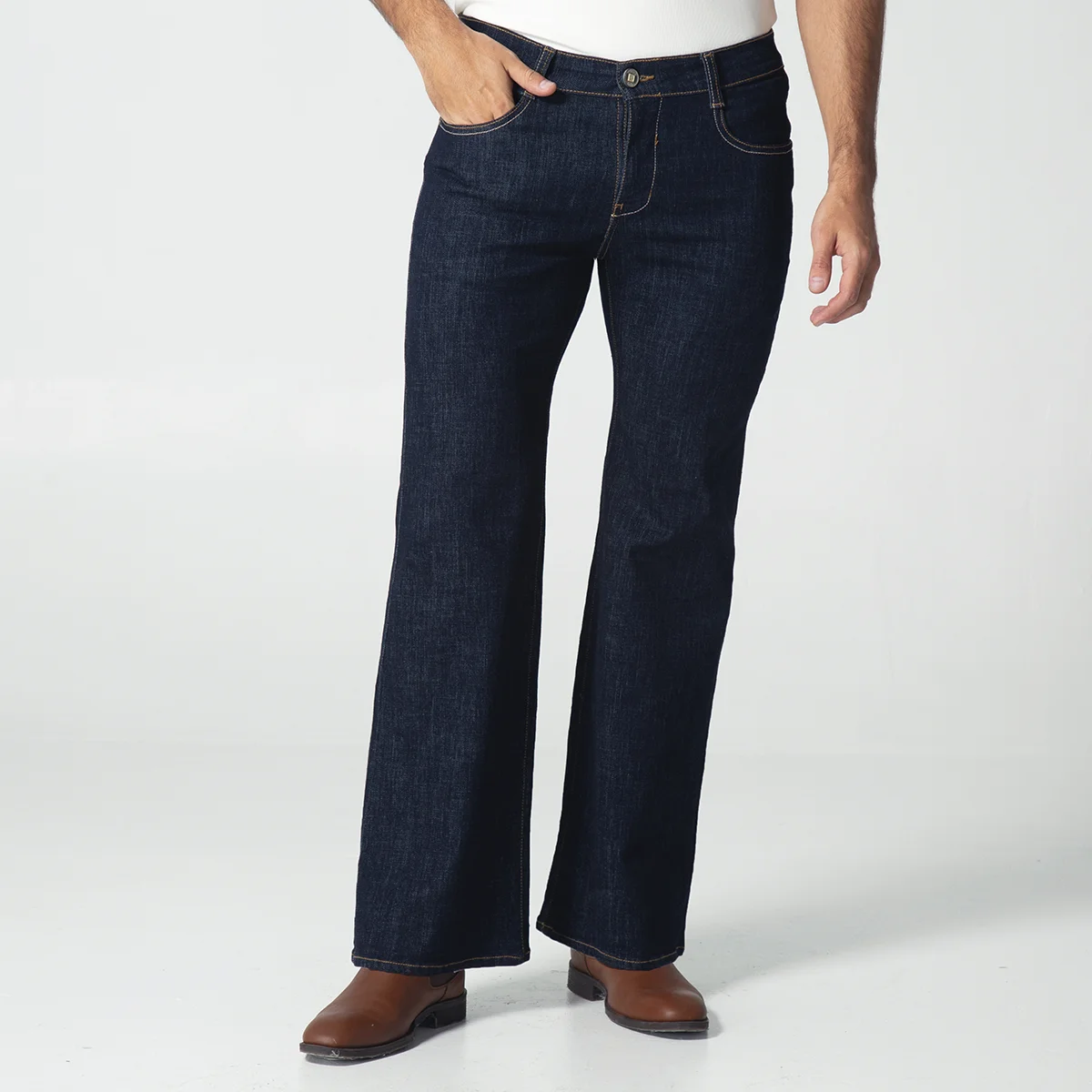 Pantalón Oldwest estilo vintage bota campana que aporta un toque clásico y elegante, La pretina cuenta con un botón para un ajuste cómodo y seguro, complementada por un cierre de cremallera. En la parte frontal presenta bolsillos redondos que añaden funcionalidad y estilo, además de un relojero decorado con un detalle de bordado que le da un toque artesanal. En la parte posterior, dispone de un bolsillo tipo parche ideal para llevar pequeños objetos de forma práctica y con un diseño que realza su carácter tradicional.