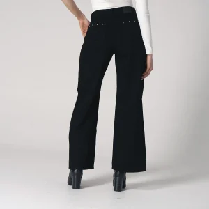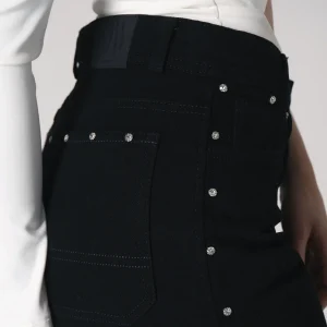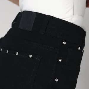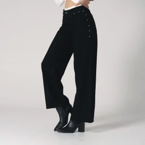 Pantalón Glammed en denim combina estilo y detalle con su diseño moderno. Cuenta con una pretina de un solo botón y cierre de cremallera para un ajuste cómodo y seguro. En la parte frontal, presenta bolsillos funcionales y un relojero que aportan practicidad y estilo. En la parte posterior, tiene bolsillos tipo parche decorados con bordado, añadiendo un toque distintivo. Además, está adornado con pedrería que le da un acabado brillante y sofisticado, ideal para lucir elegante en cualquier ocasión