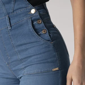 Overol Alakran en denim silueta wide leg, ofrece un estilo cómodo y moderno, En la parte delantera superior cuenta con un peto con tirantes ajustables que te brindan mayor comodidad, Cuenta con bolsillos redondos en la parte frontal ideales para llevar pequeños objetos con facilidad, cierre en botones ubicados en los costados, facilitando su puesta y retirada. En la parte posterior, dispone de bolsillos tipo parche que aportan funcionalidad y un toque casual al diseño perfecto para un look desenfadado y versátil en diferentes ocasiones.