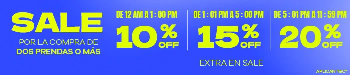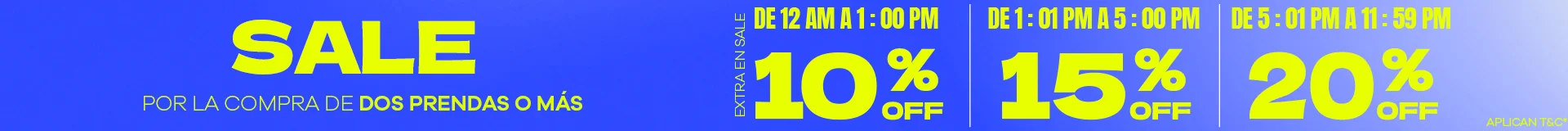 SALE: Por compras de 2 o más prendas, recibe descuentos extra en SALE según la hora de tu compra
