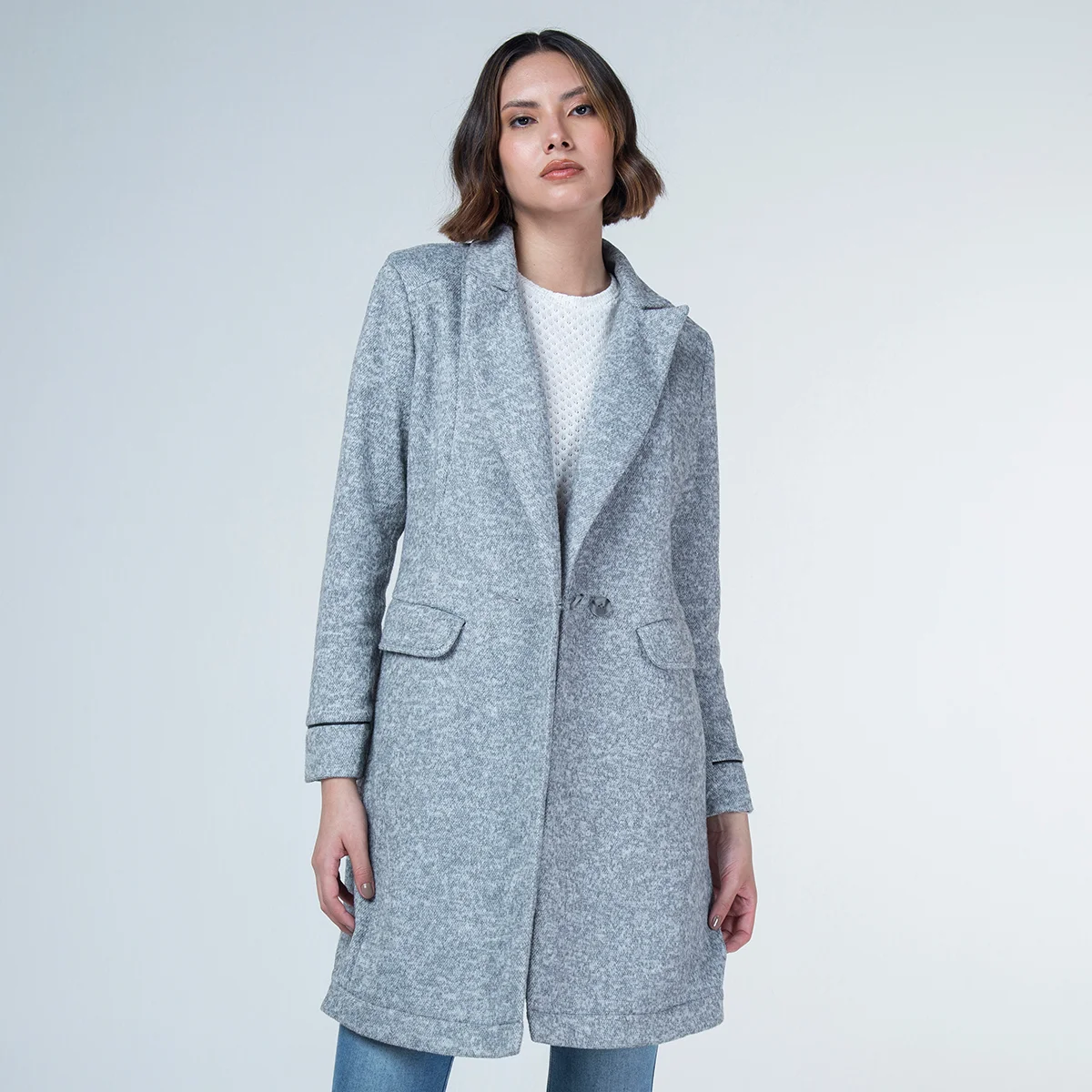 Abrigo Copenhage ideal para esos días fríos de invierno, manga larga, su cuello solapa te brinda un extra de calidez ya que su tejido grueso te mantendrá abrigado y cómodo en todo momento. Su sistema de cierre es de botonadura cruzada, en la parte frontal cuenta con bolsillos con tapa, esta prenda cuenta con detalles de vivos en sintético que le dan un toque moderno y sofisticado a la prenda.