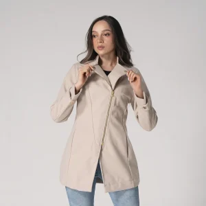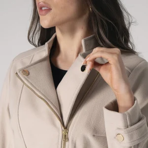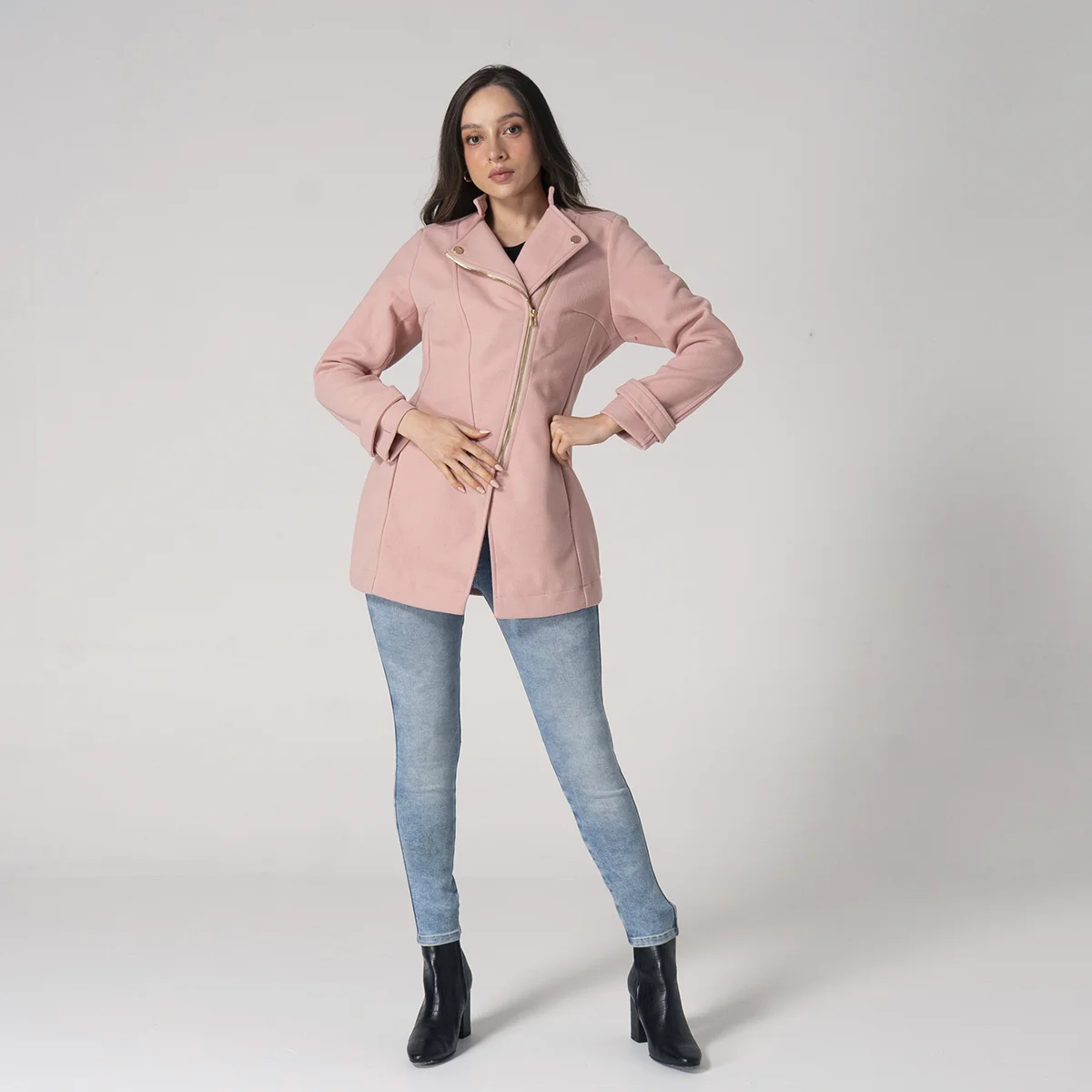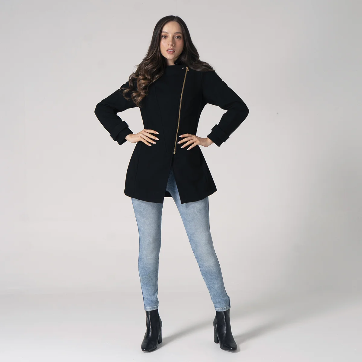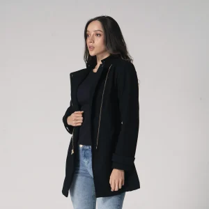 Abrigo Walker en paño silueta Slim que realza la figura, ideal para un estilo elegante y moderno. Su cuello tipo Néru y la solapa cruzada aportan un toque sofisticado y distintivo. Las mangas largas están decoradas con detalles de charretera añadiendo un elemento de estilo clásico y refinado. En la parte frontal, cuenta con bolsillos internos en corte, perfectos para mayor funcionalidad y comodidad. El sistema de cierre es de cremallera, ofreciendo facilidad y seguridad al usarlo. En la parte posterior, presenta una almilla y cortes de entalle que realzan la forma y proporcionan un ajuste cómodo y estilizado. Este abrigo para mujer es una pieza versátil y elegante para complementar tu guardarropa en temporadas frías.