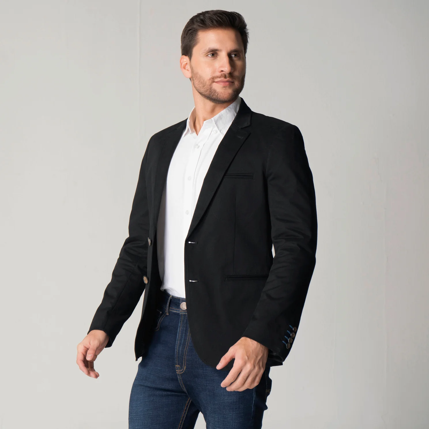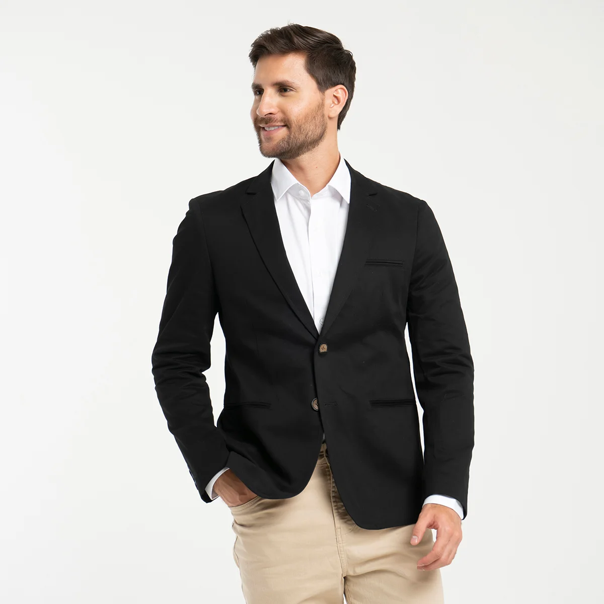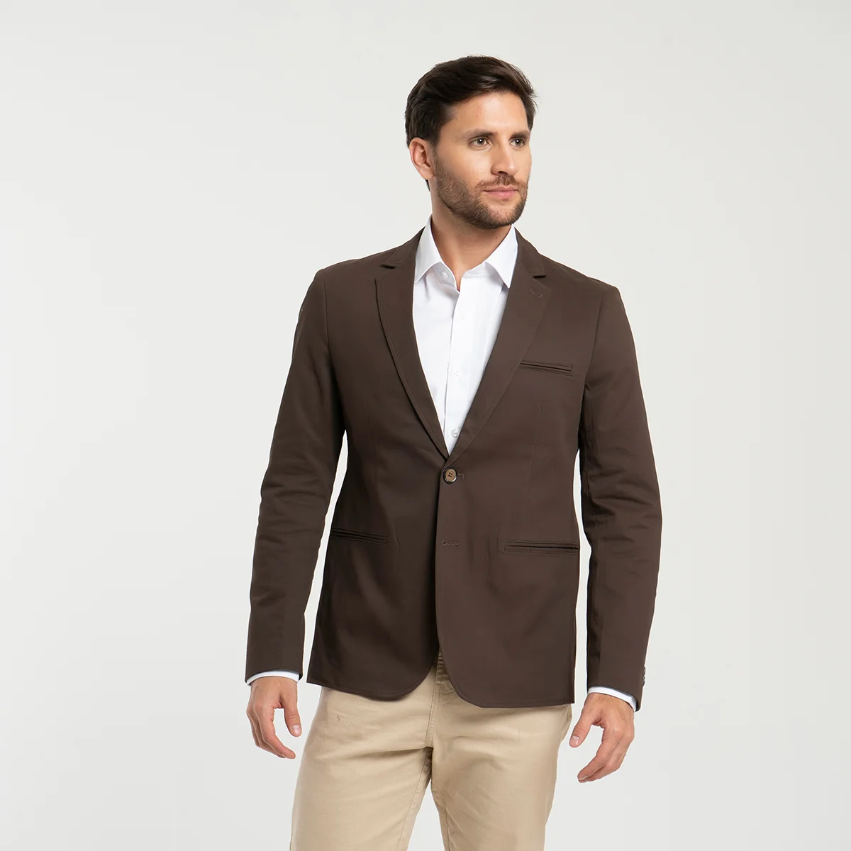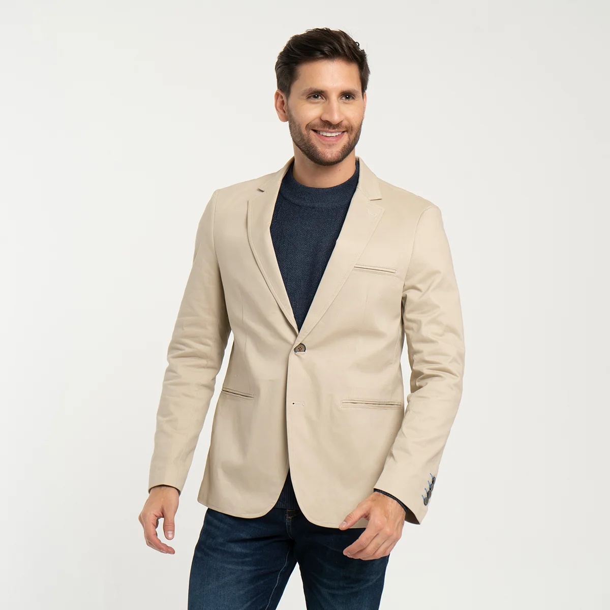 Blazer Rich, cuello solapa, su sistema de cierre es de botòn central, en la parte frontal cuenta con pinzas de entalle y tres bolsillos tipo ribete, uno en la parte superior izquierdo y dos en la parte inferior, mangas largas terminadas con detalle de botonadura.