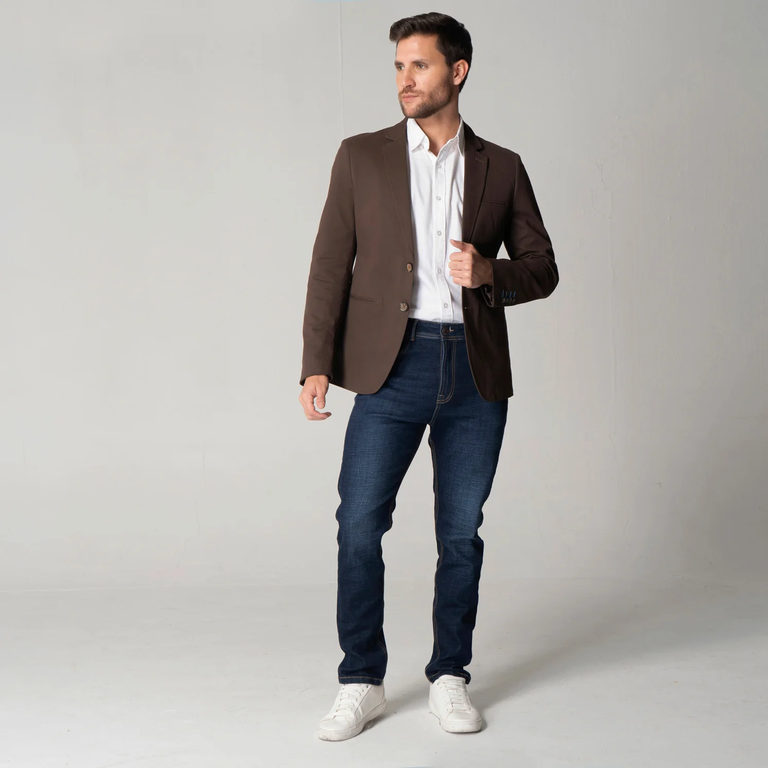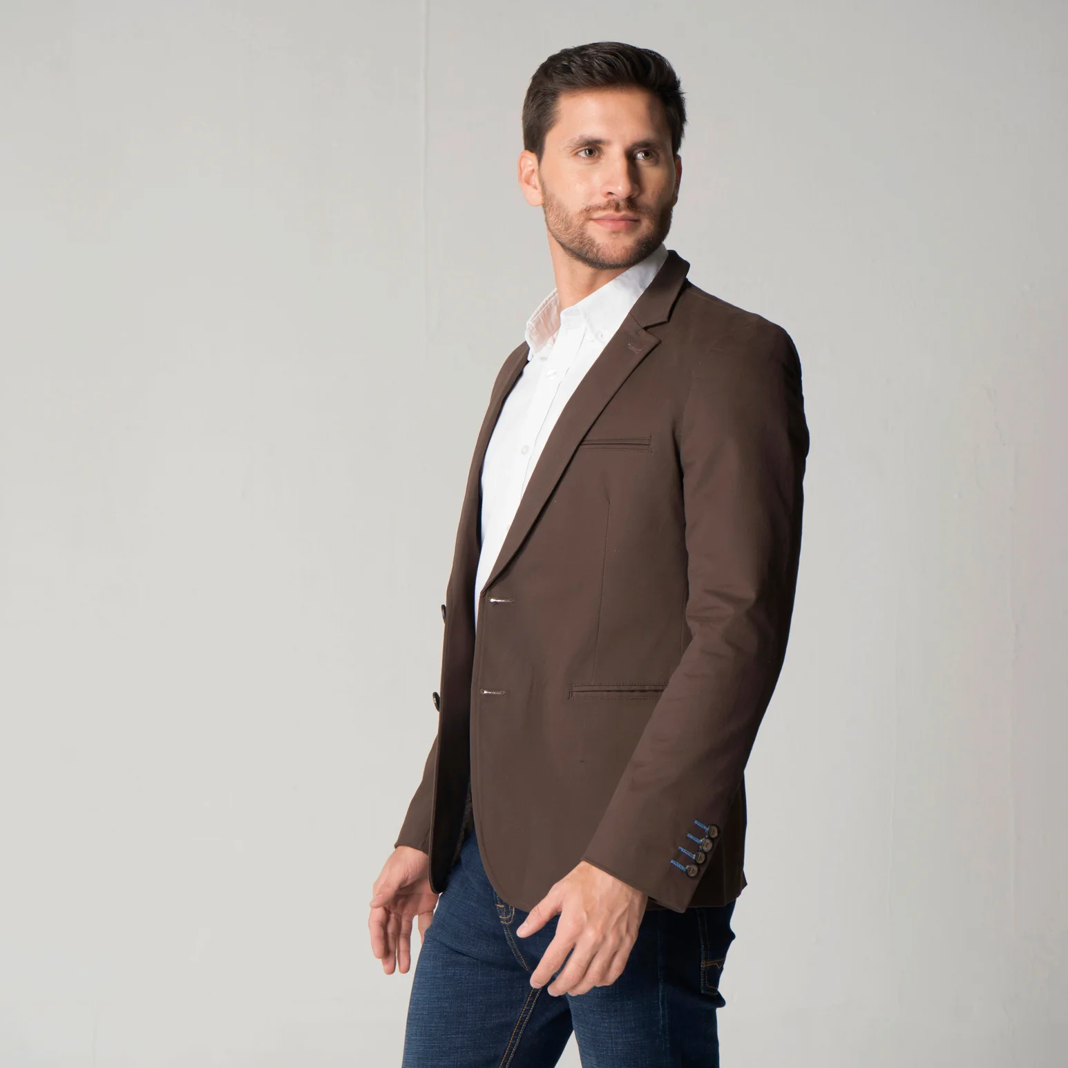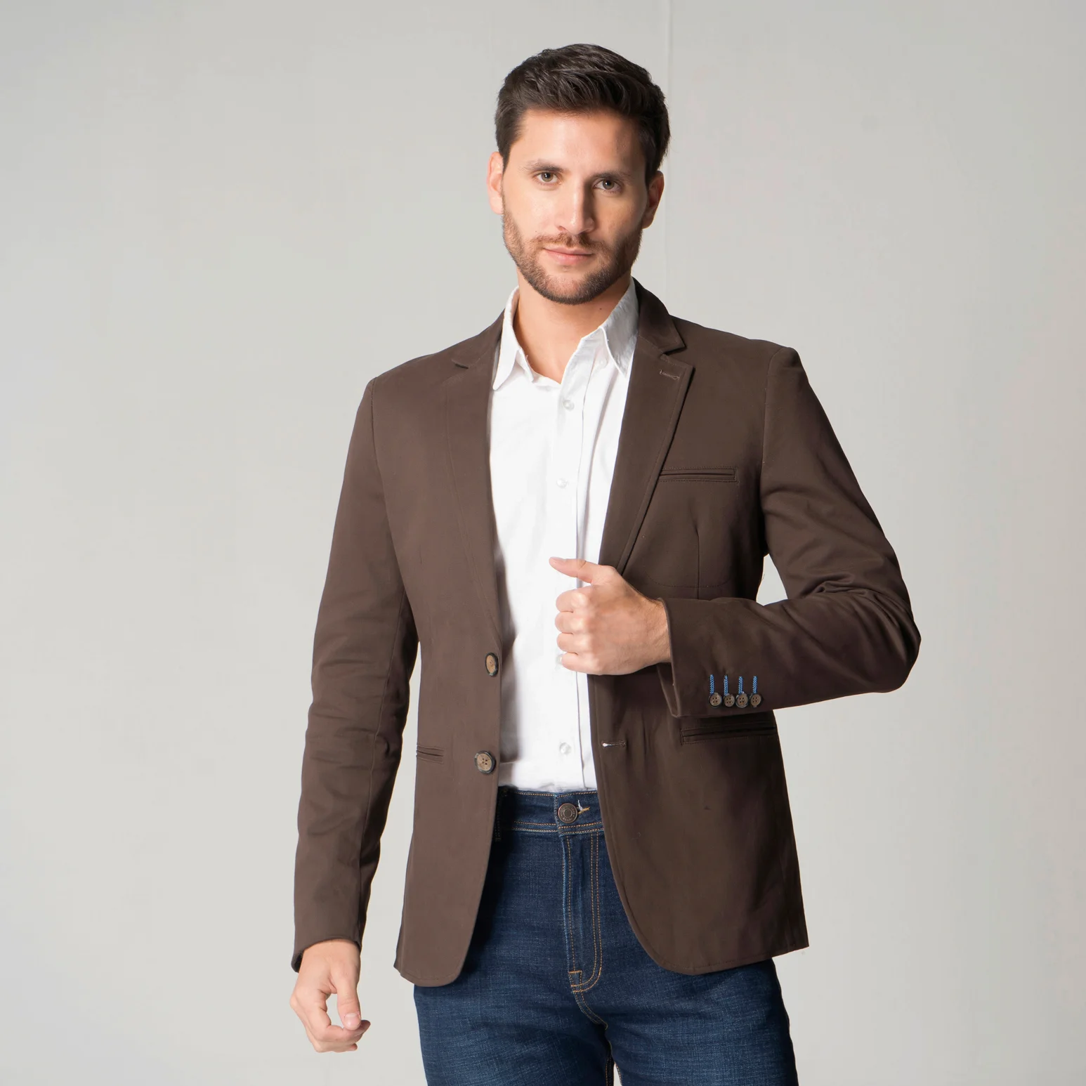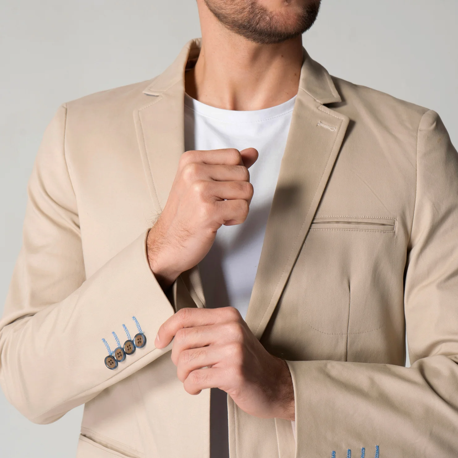 Blazer Rich, cuello solapa, su sistema de cierre es de botòn central, en la parte frontal cuenta con pinzas de entalle y tres bolsillos tipo ribete, uno en la parte superior izquierdo y dos en la parte inferior, mangas largas terminadas con detalle de botonadura.