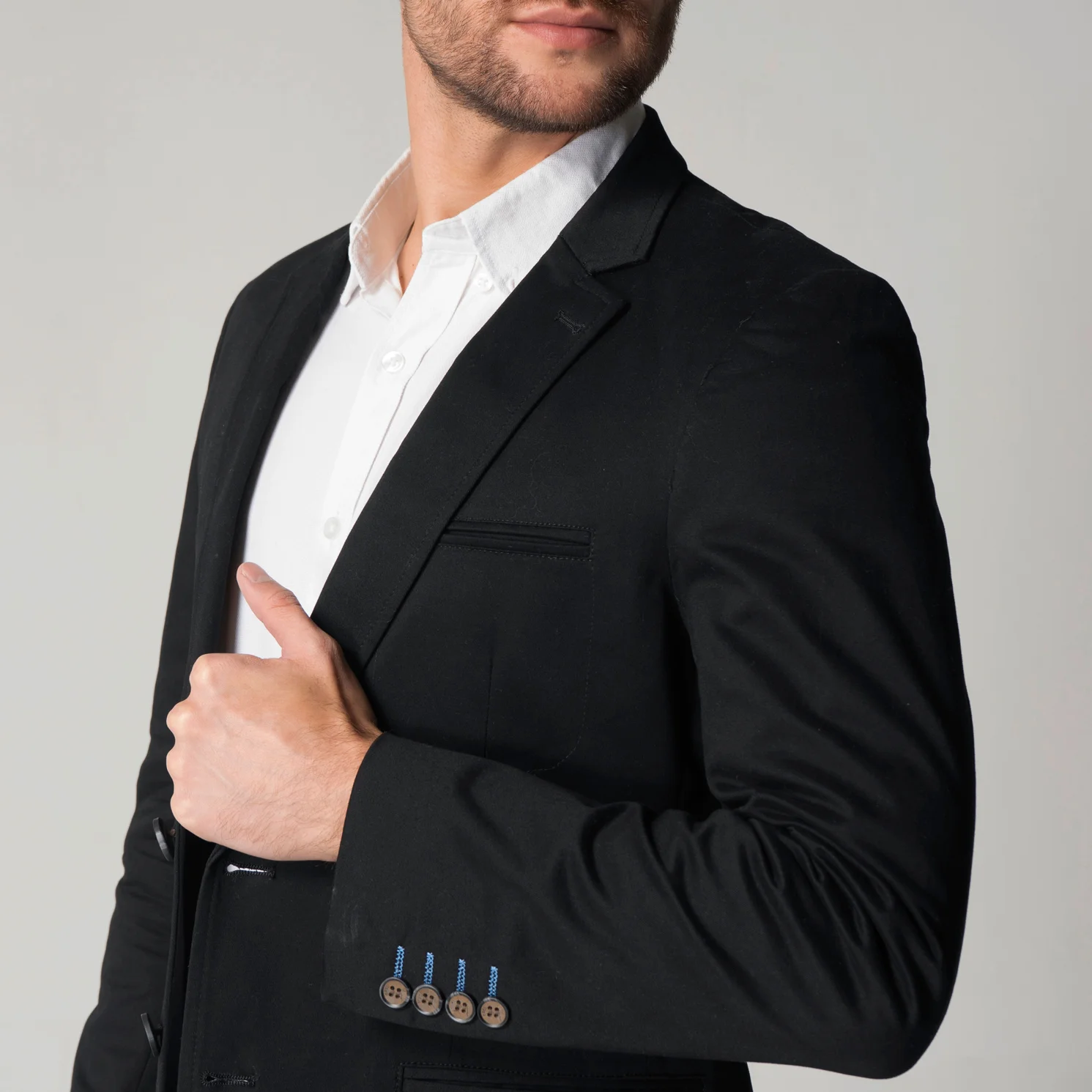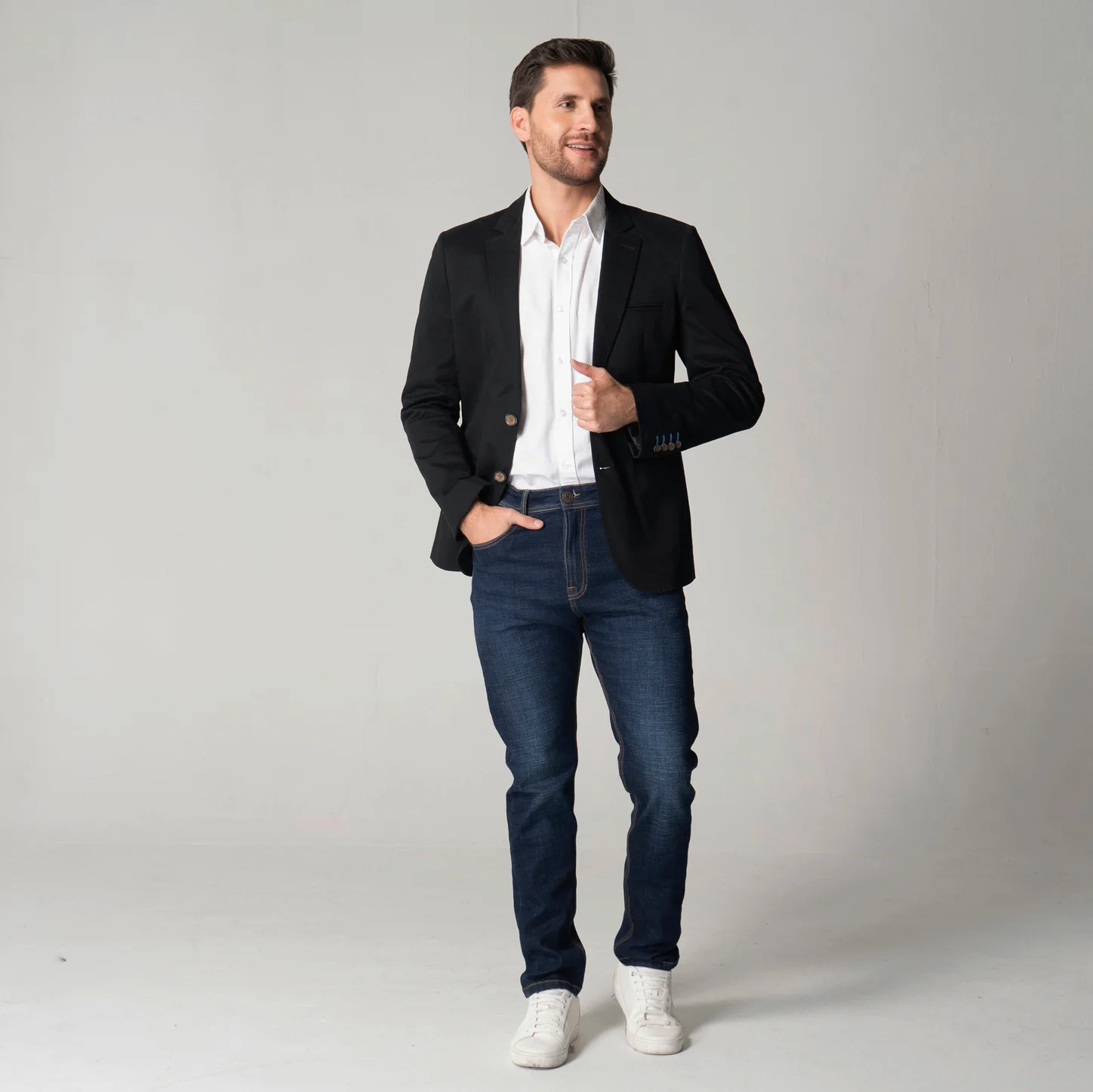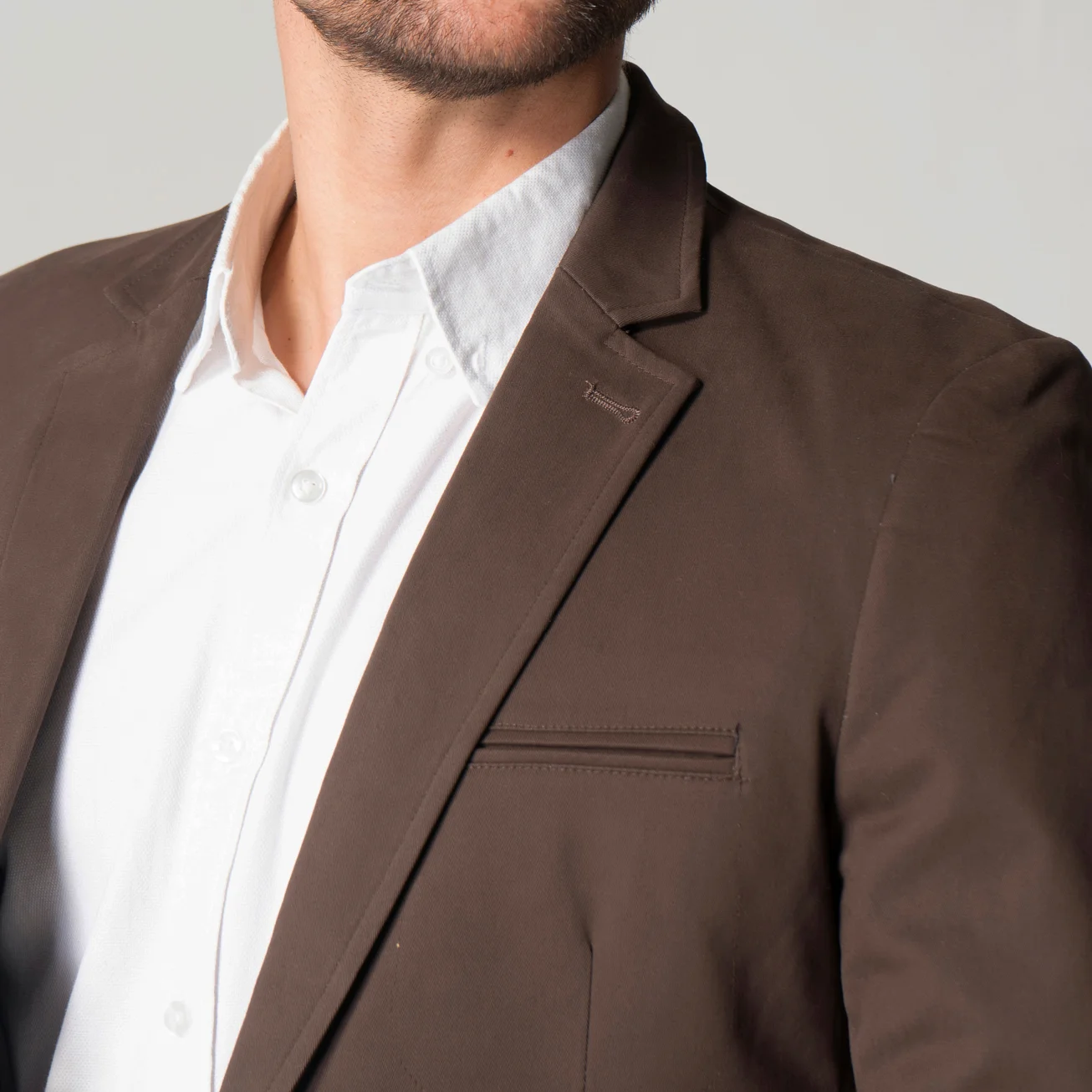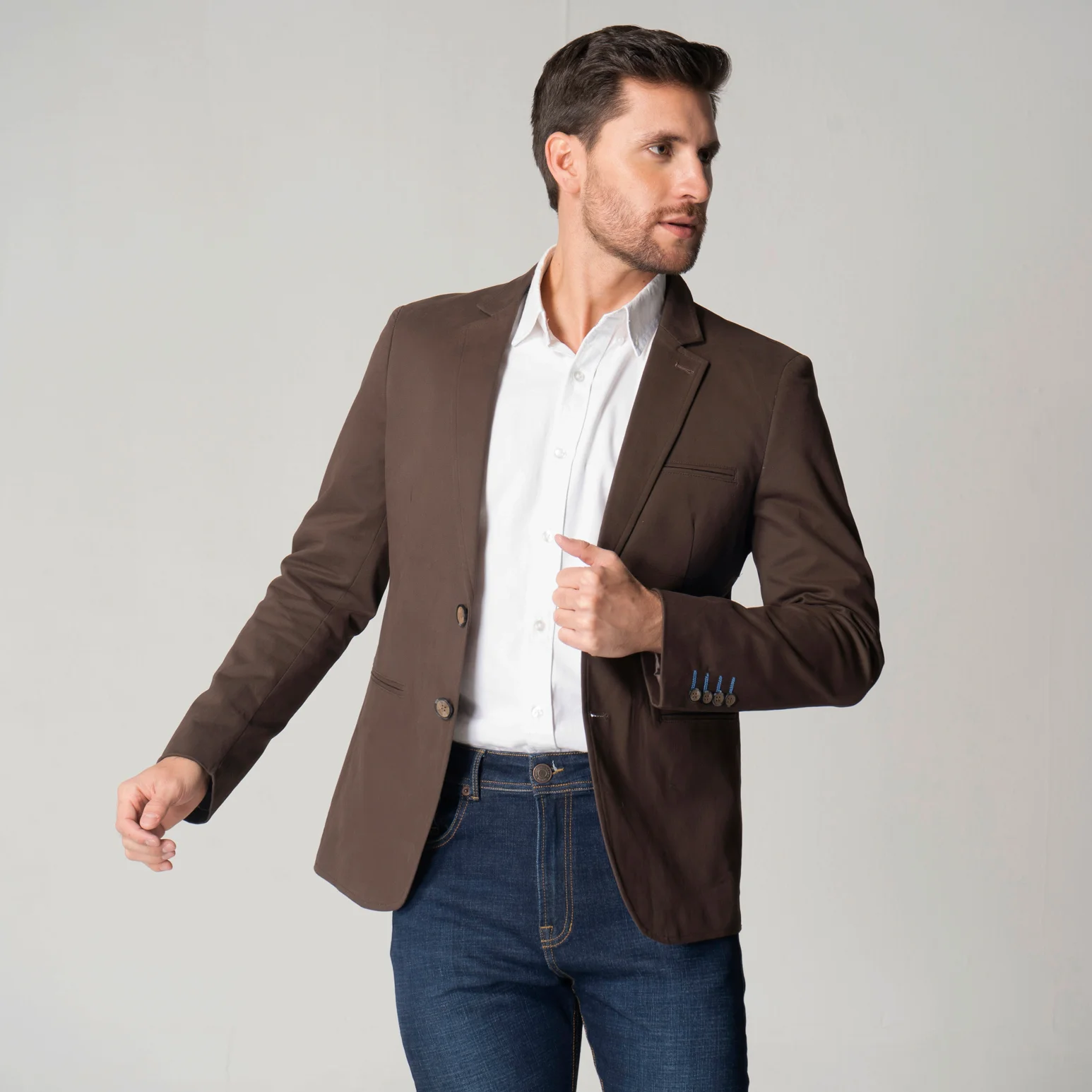 Blazer Rich, cuello solapa, su sistema de cierre es de botòn central, en la parte frontal cuenta con pinzas de entalle y tres bolsillos tipo ribete, uno en la parte superior izquierdo y dos en la parte inferior, mangas largas terminadas con detalle de botonadura.