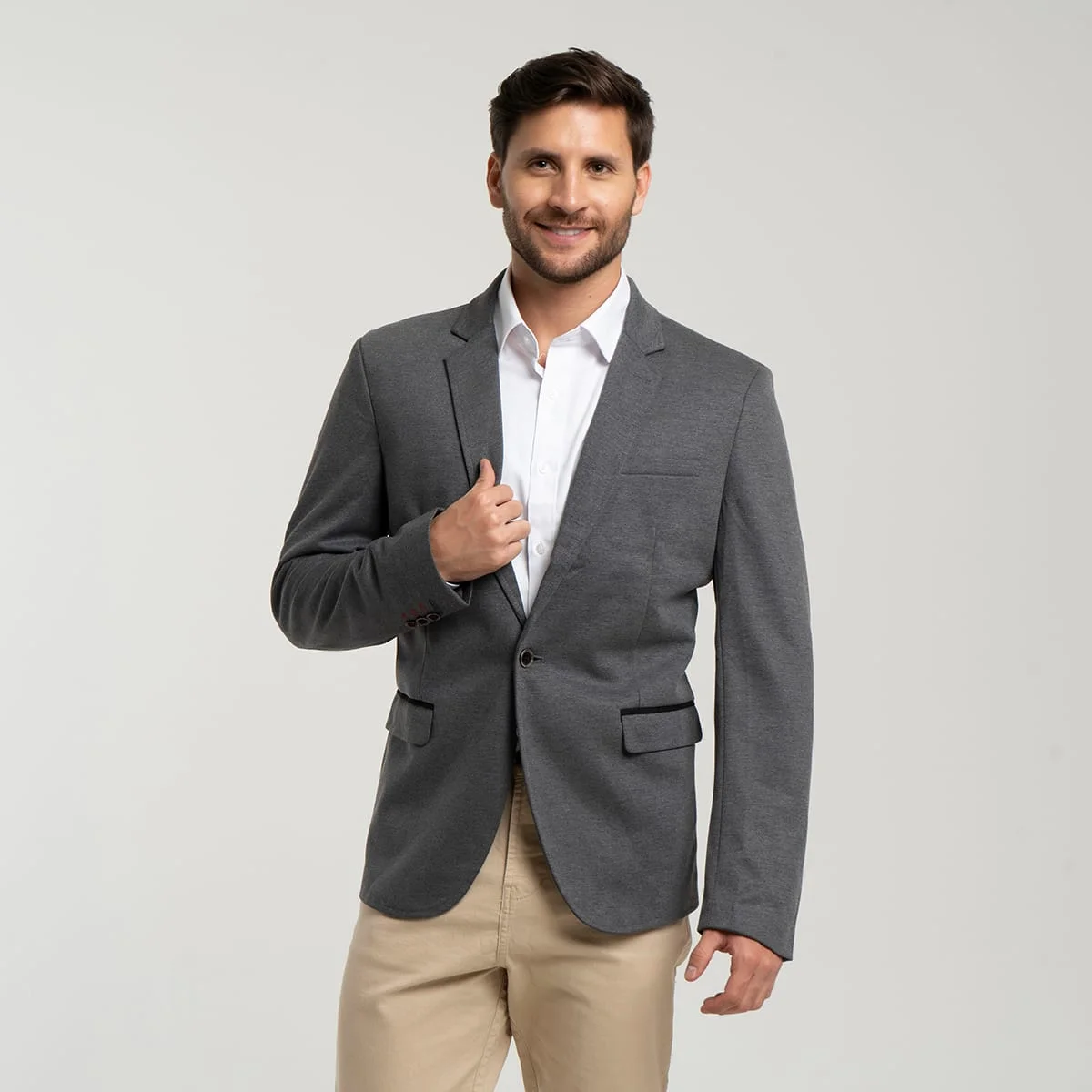 Blazer Magnus para hombre, cuello con solapa, su sistema de cierre es de un solo botón que le da un acabado elegante y sofisticado. En la parte frontal cuenta con pinzas de entalle y tres bolsillos, uno en la parte superior izquierdo tipo ribete, y dos bolsillos con tapa, mangas largas terminadas con detalle de botonadura. Es una prenda versátil que puede ser utilizada tanto para ocasiones formales como informales.