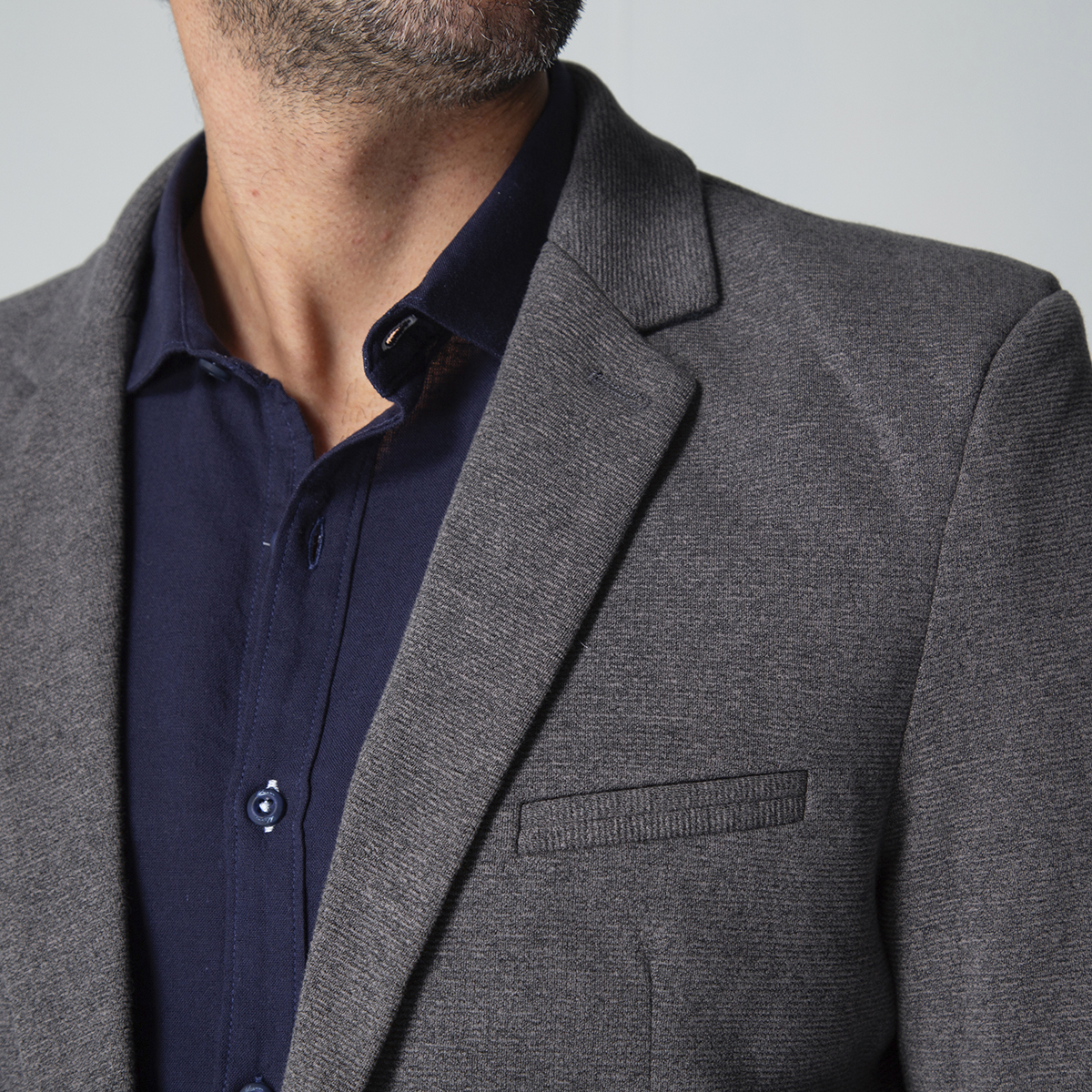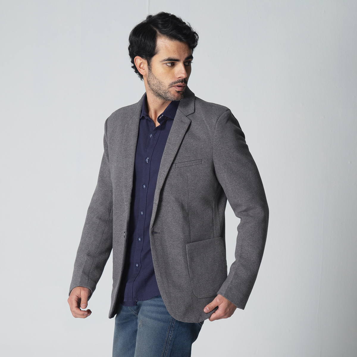 Blazer Kupp Slim que realza la figura de manera elegante. Cuenta con un cuello con solapa que le aporta un toque clásico y sofisticado. Su sistema de cierre es de un solo botón, facilitando su uso y brindando un acabado limpio, En la parte frontal, dispone de tres bolsillos, uno en el parte superior izquierdo con ribete, y dos bolsillos tipo parche en la parte inferior curvos y prácticos, La parte posterior está diseñada con un corte central y entalle que aportan estructura y estilo, Las mangas largas terminan con detalles de botonadura complementando el diseño y añadiendo un toque distintivo.