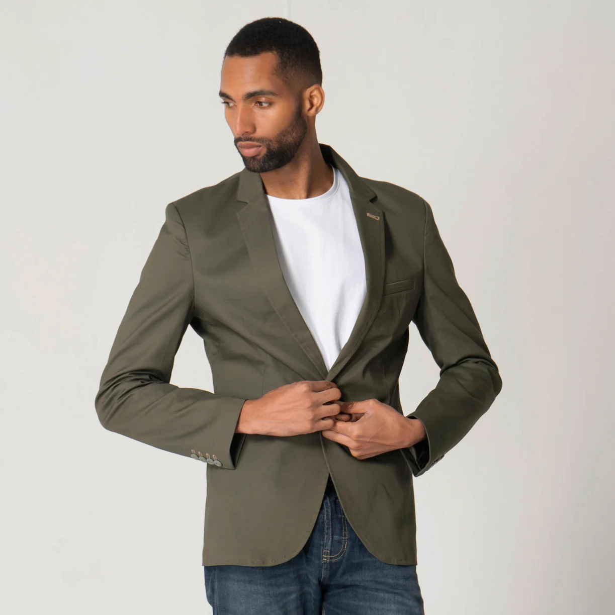 Blazer Lorenzo clásico y sofisticado que destaca por su elegante diseño. Con un cuello solapa que le aporta un toque refinado, este blazer se cierra con un botón central, garantizando un ajuste cómodo y estilizado. Su confección incluye pinzas de entalle en la parte frontal, que ayudan a definir la silueta, mientras que cuenta con tres bolsillos tipo ribete: un bolsillo en la parte superior izquierda y dos en la parte inferior, ideales para el almacenamiento de pequeños objetos o simplemente para añadir un detalle funcional a la prenda. Las mangas largas terminadas con detalle de botón añaden un toque de distinción al acabado final. Este blazer para hombre es perfecto tanto para ocasiones formales como para dar un toque elegante a un look más casual.