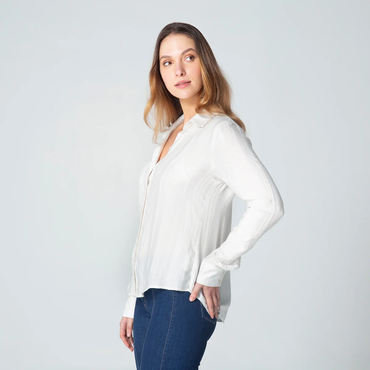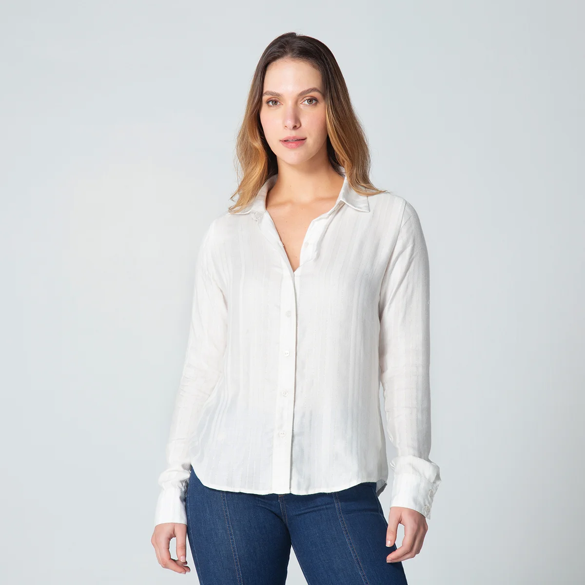 Blusa Indiry Camisera es una prenda de estilo clásico y versátil, ideal para cualquier ocasión, su diseño incorpora un elegante cuello sport y manga larga para un look profesional y sofisticado.
