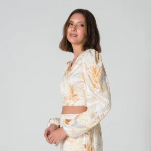 En la parte frontal, destaca por sus tiras que permiten anudar, ofreciendo un ajuste personalizado y un efecto visual atractivo. Esta blusa es perfecta para combinar con pantalones ajustados o faldas, y es ideal tanto para un look casual como para ocasiones más formales. Con su corte y detalles únicos, la blusa Jazz se convertirá en un básico versátil en tu guardarropa.