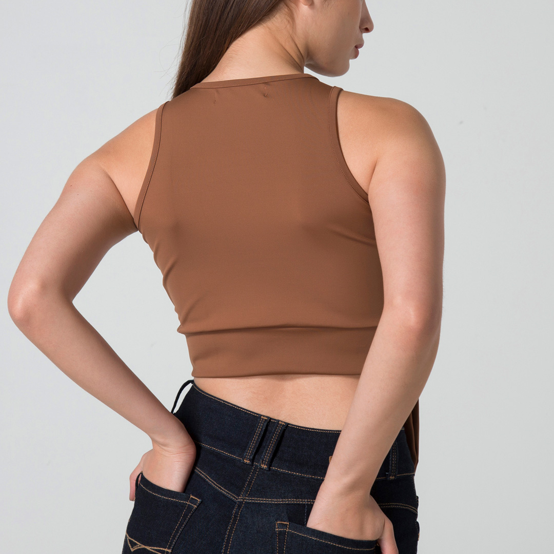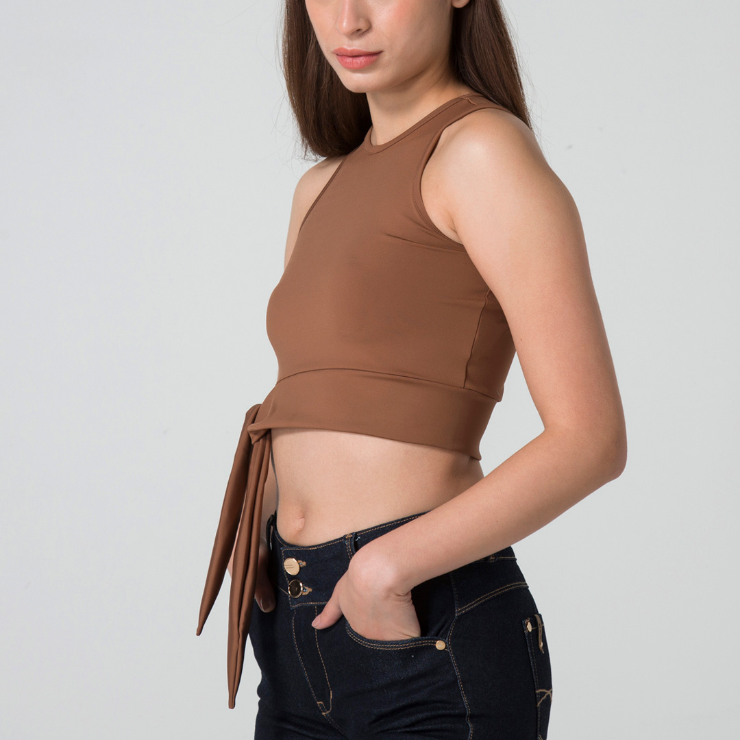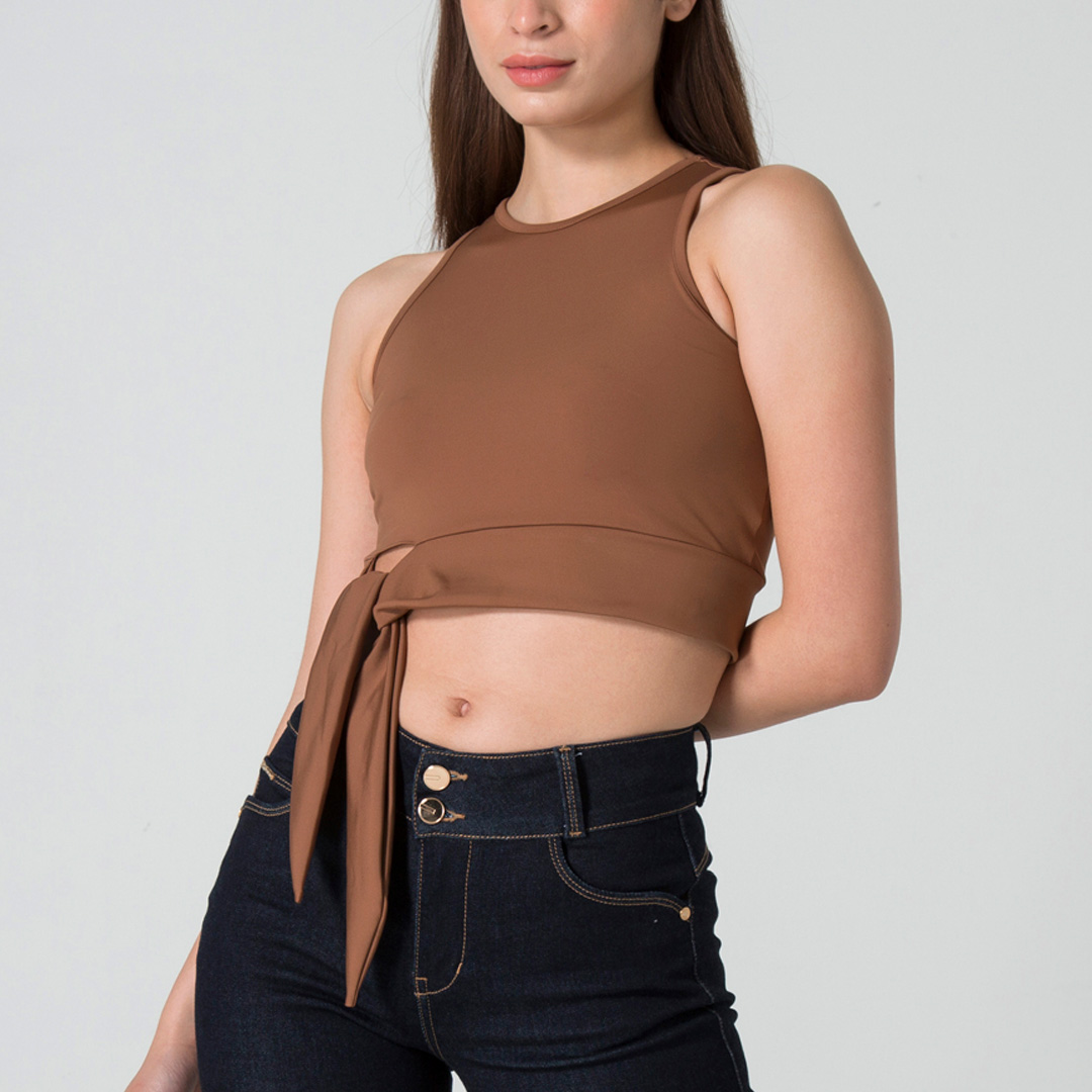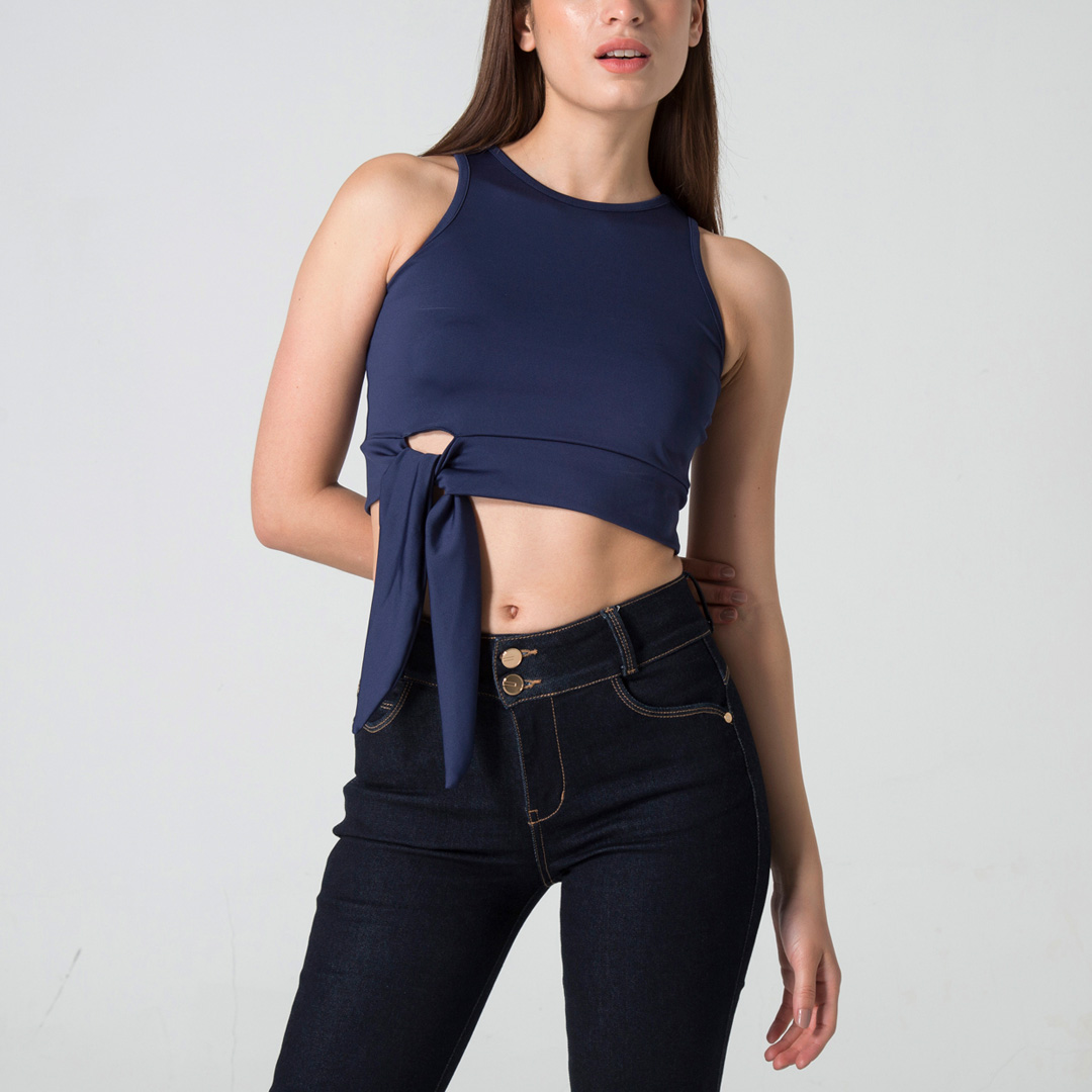 El detalle en la cintura, diseñado para anudar, no solo aporta un toque femenino, sino que también permite ajustar el fit de la prenda, realzando la silueta. Este crop top se puede combinar fácilmente con jeans, faldas o pantalones de tiro alto, convirtiéndose en una pieza versátil que se adapta a diferentes ocasiones, ya sea para un día casual o una salida nocturna. Su diseño minimalista lo hace fácil de estilizar, convirtiéndose en un must-have en cualquier guardarropa.