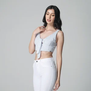 Crop top Handle presenta un diseño con escote en forma de corazón, acompañado de tiras ajustables que permiten adaptarlo cómodamente sobre el pecho. Cuenta con tirantes encauchados que brindan un toque de textura y estilo. En la parte posterior dispone de un sistema de cierre de cremallera que facilita su colocación y remoción combinando funcionalidad con un diseño atractivo.