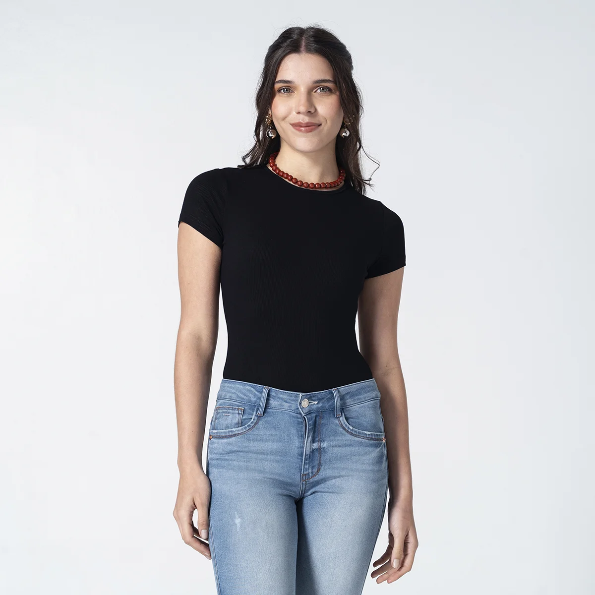 Nuestro body básico para mujer Nina, una prenda esencial de silueta slim diseñada para adaptarse a tu cuerpo como una segunda piel, este body de manga corta y cuello redondo ofrece un acabado limpio y sin arrugas, ideal para combinar con jeans de tiro alto, faldas o bajo chaquetas estructuradas, Su diseño minimalista y funcional garantiza comodidad durante todo el día convirtiéndolo en la pieza clave de moda femenina para crear looks de capas o estilos urbanos sofisticados. Ya sea para un outfit casual de diario o como base de un conjunto elegante, esta blusa para mujer es el básico imprescindible que aporta frescura, soporte y una estética moderna a cualquier guardarropa.
