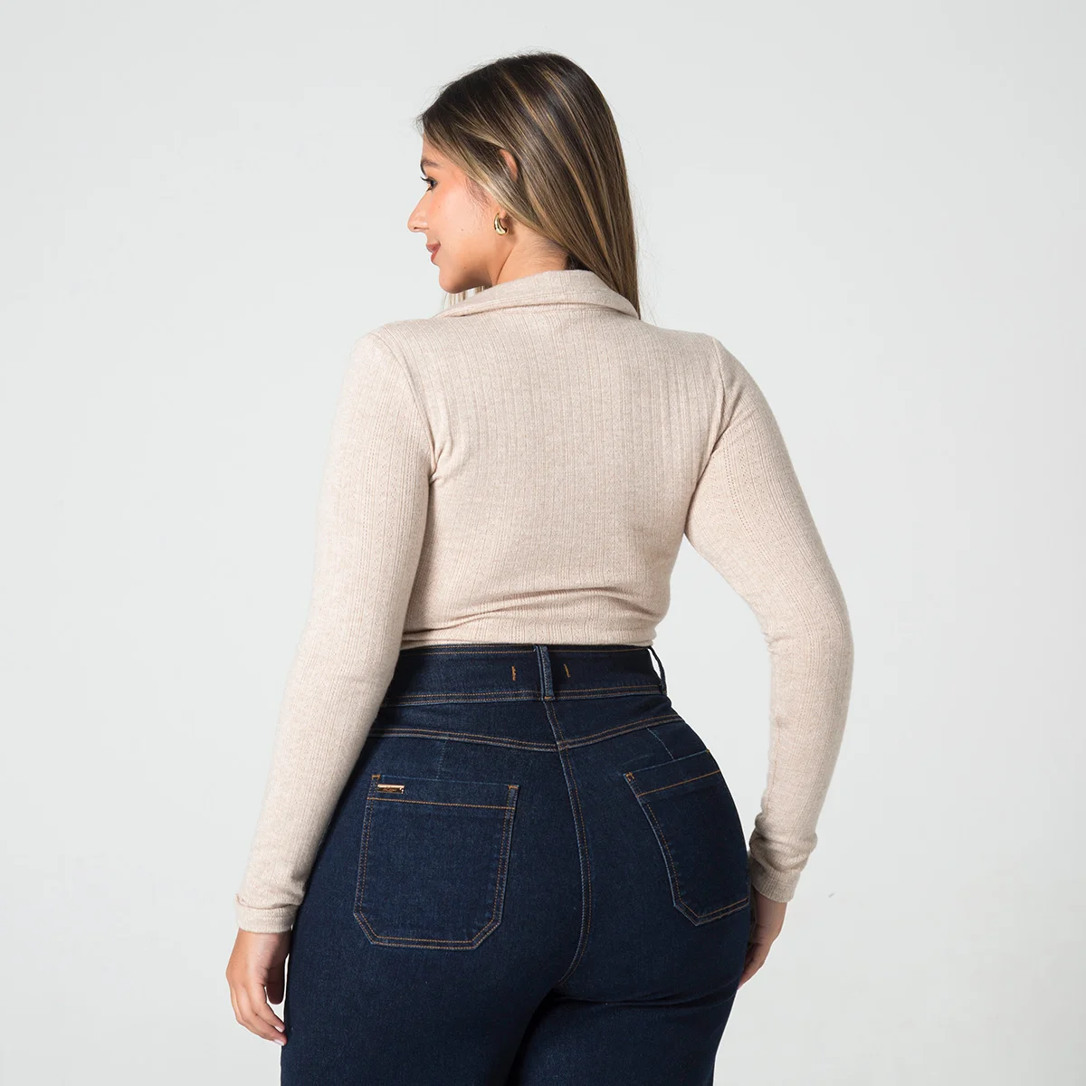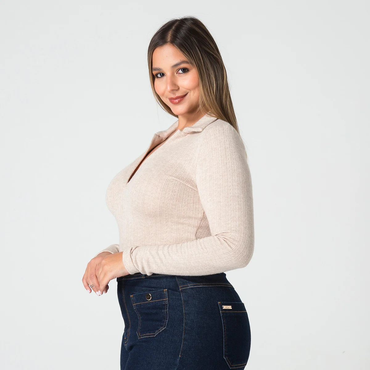 Body de la colección WTRS presenta un diseño elegante y moderno, ideal para realzar la figura con su silueta slim. Tiene mangas largas que aportan un toque de sofisticación, y su cuello sport abierto le da un aire casual y versátil. En la parte inferior, cuenta con broches a presión que facilitan el cierre, ofreciendo comodidad y un ajuste perfecto. Este body es perfecto para combinar con diferentes conjuntos, desde jeans hasta faldas, y es ideal para cualquier ocasión, ya sea informal o semi-formal.