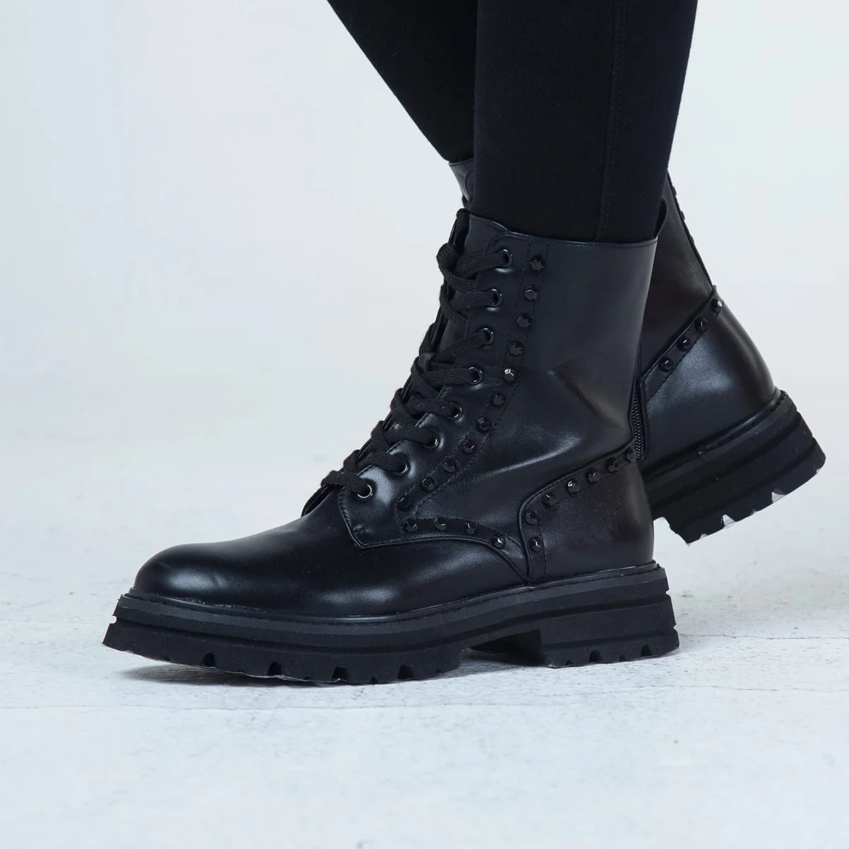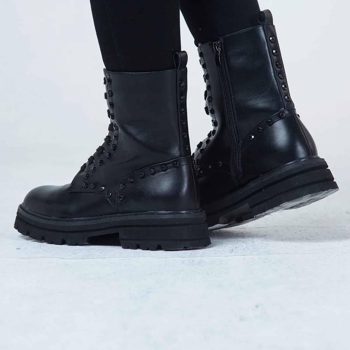 Bota militar Sadie son la combinación perfecta entre estilo y comodidad. Cierre de cordones y cremalleras lateral te permitirá ajustarlas a tu medida, ponértelas y quitártelas fácilmente. Estas botas están fabricadas con materiales sintéticos de alta calidad, lo que las hace duraderas y resistentes al uso diario.