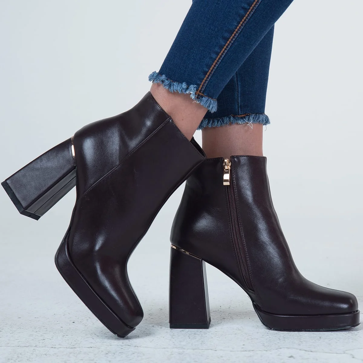 Botín formal florida para mujer su diseño es sobrio, en material sintético liso destacando por las costuras delicadas que recorren toda la estructura, el cierre de cremallera en este calzado asegura un ajuste óptimo al pie. Su tacón alto y fino complementa perfectamente su estilo formal, ideal para eventos y ocasiones especiales.
