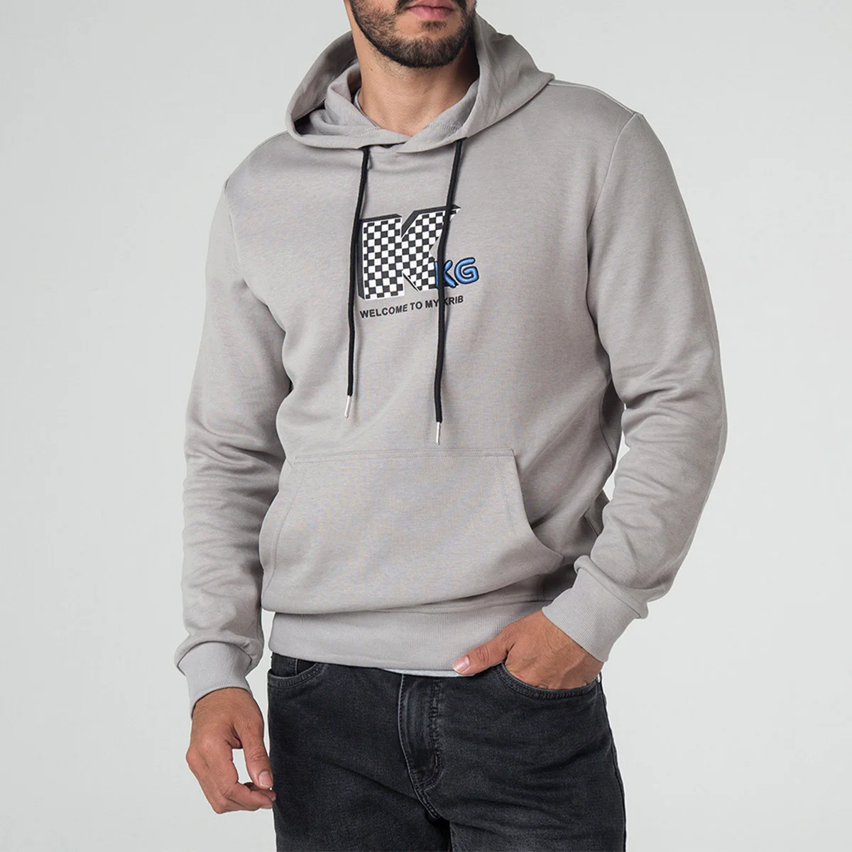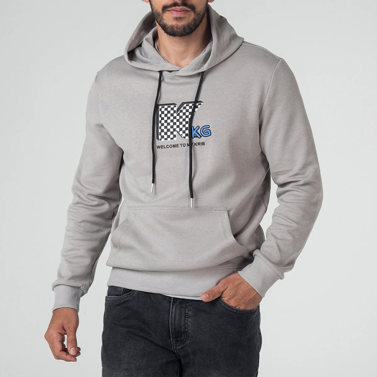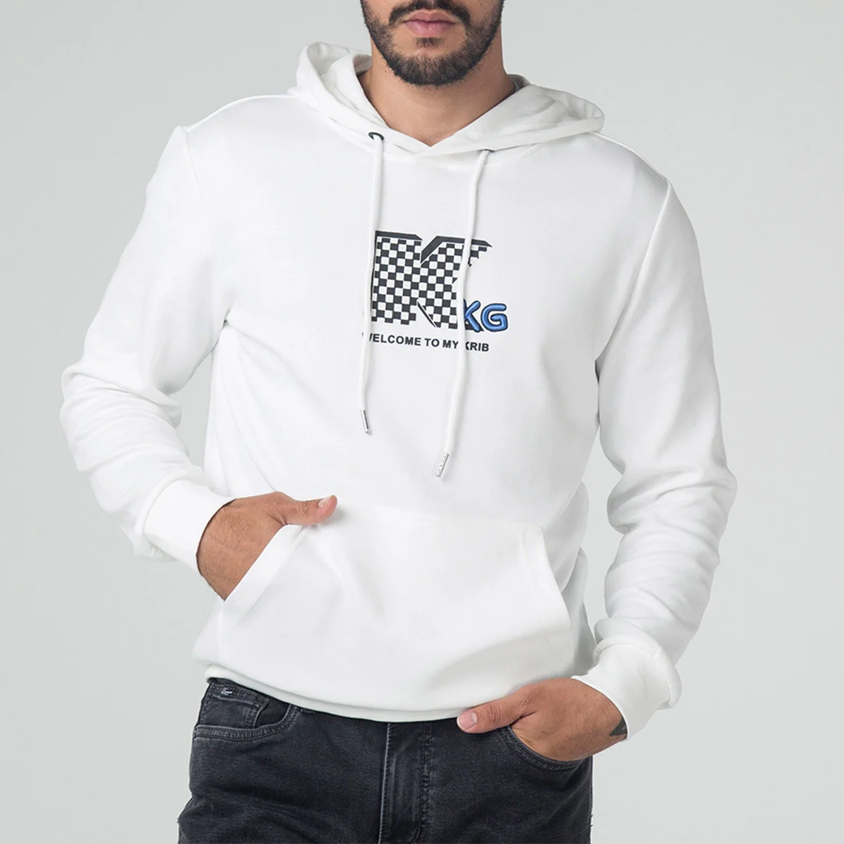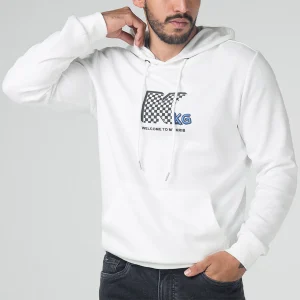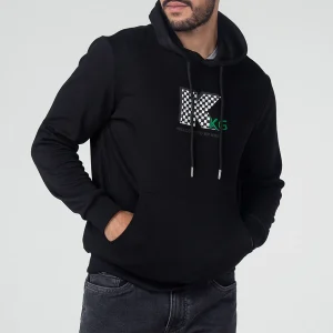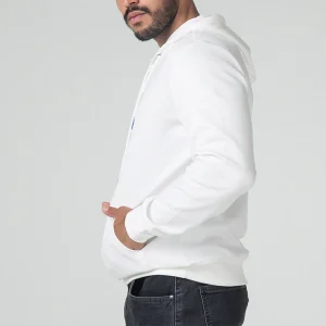 Buzo Forest con capota y canal de cordón de ajuste, manga larga, en la parte frontal cuenta con bolsillo tipo canguro y estampado y bordado localizado central, su pretina y puños son en rib.