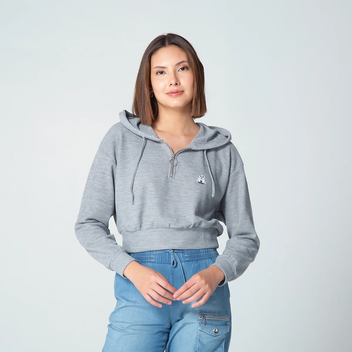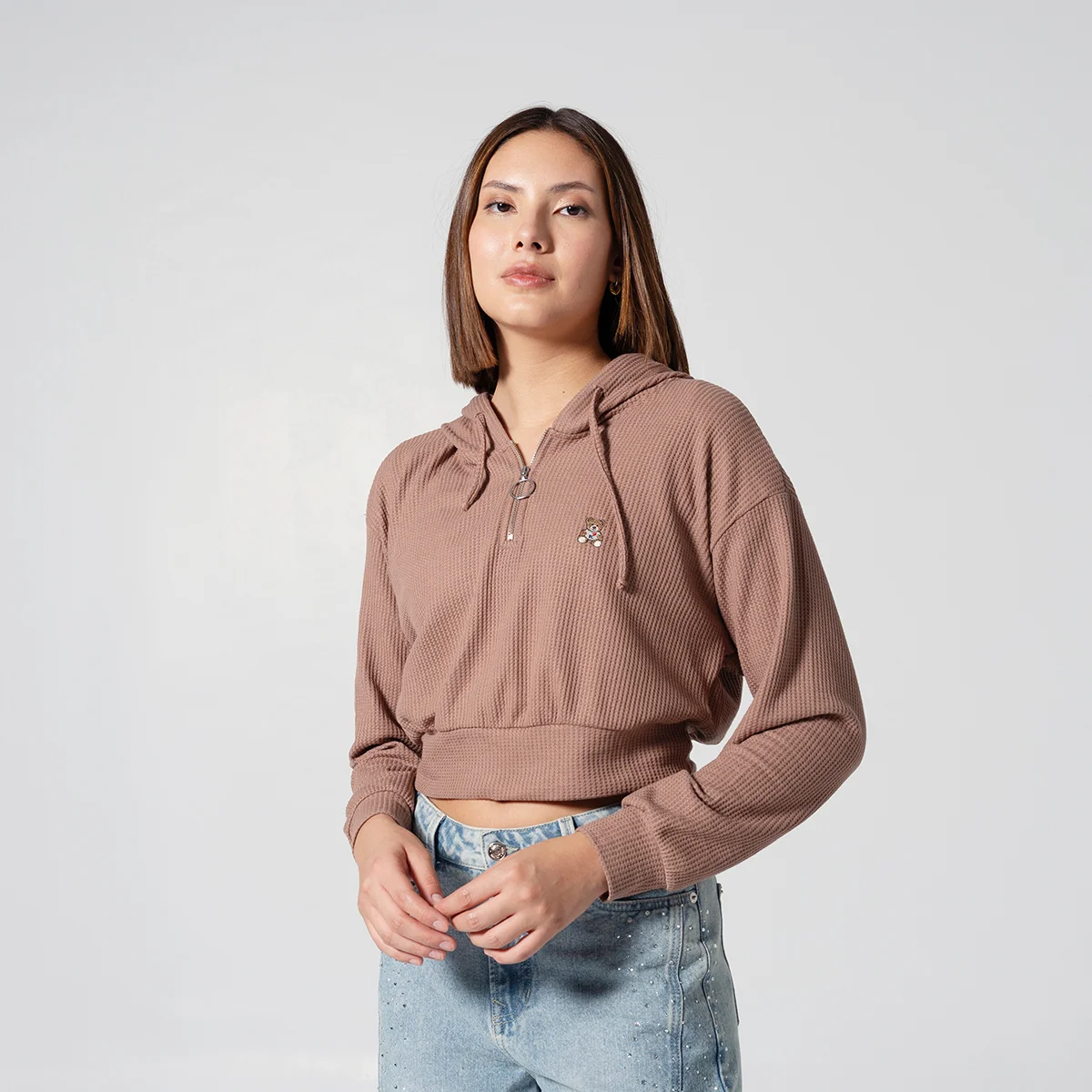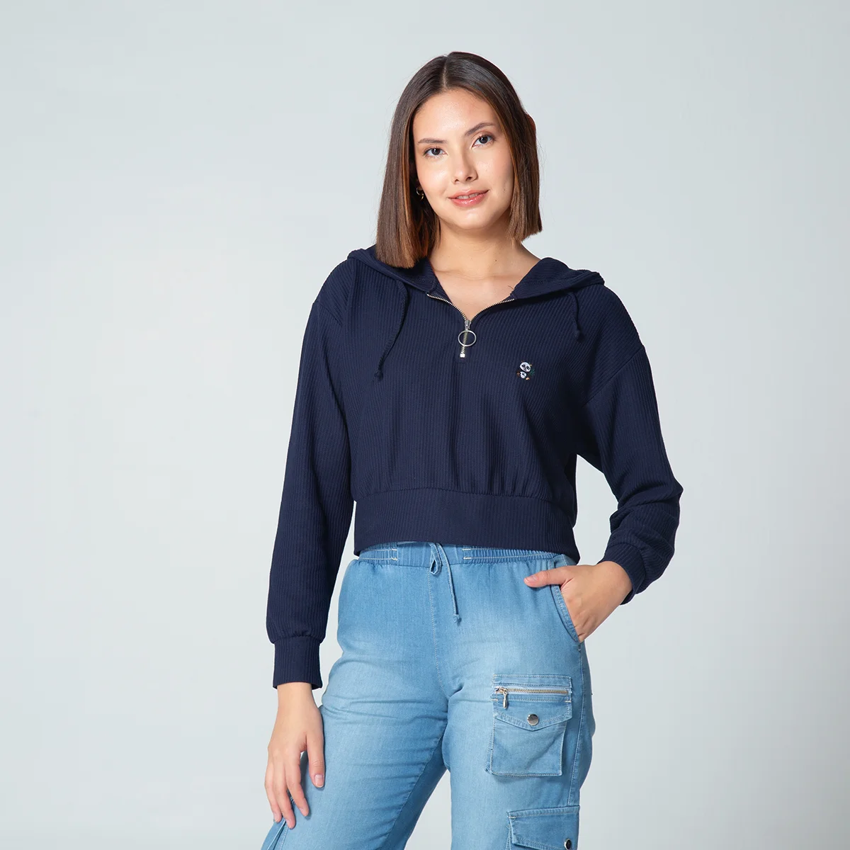 Buzo Paradise es una prenda cómoda y de estilo relajado, diseñada con una silueta regular y una práctica capota, su diseño incorpora un sistema de cremallera en el centro, que facilita el cierre y permite variar el escote.