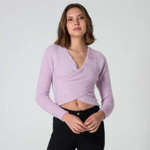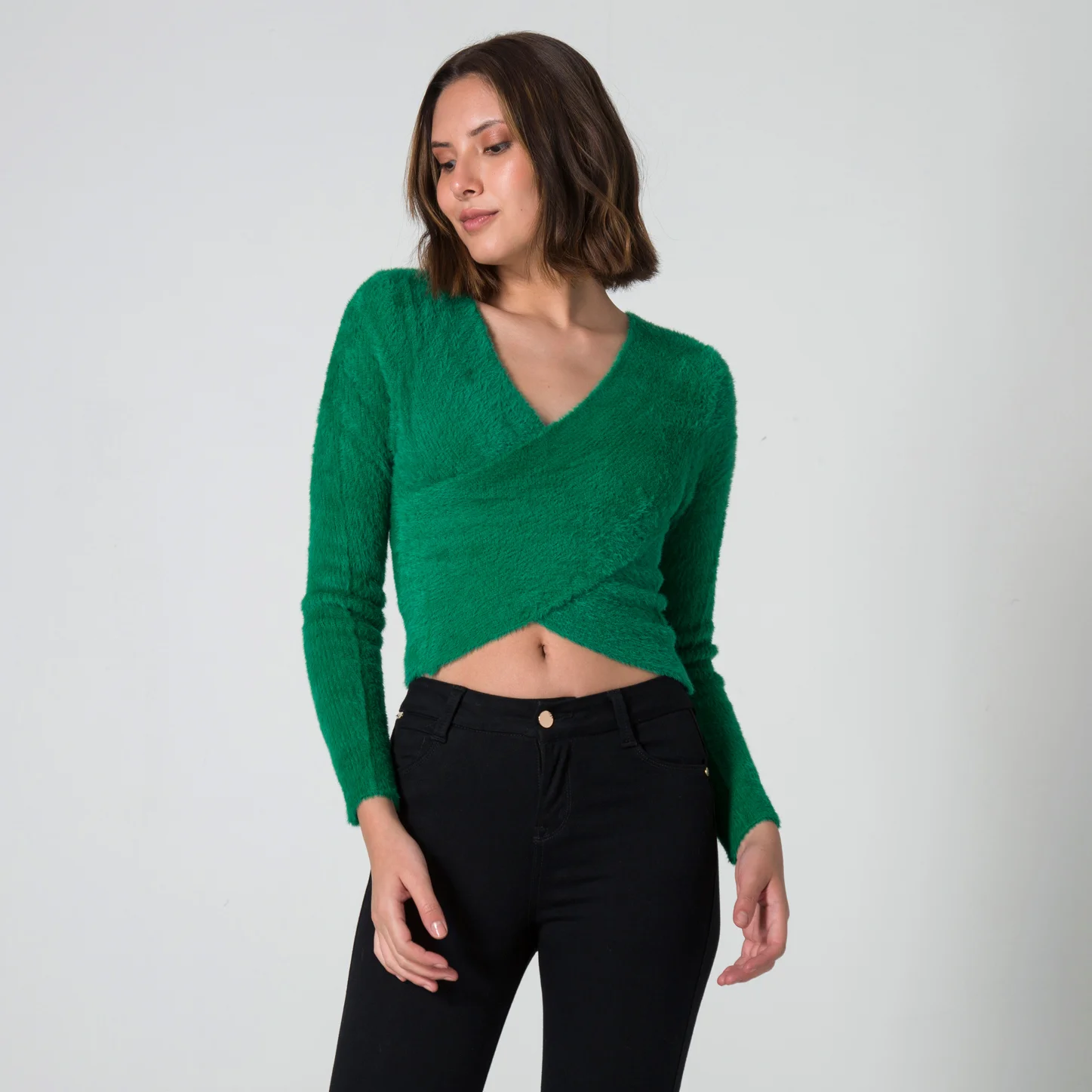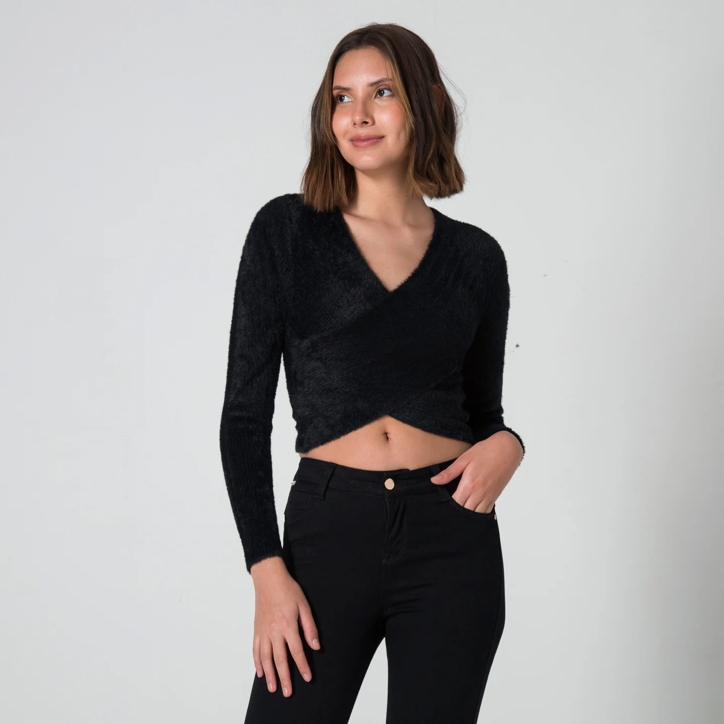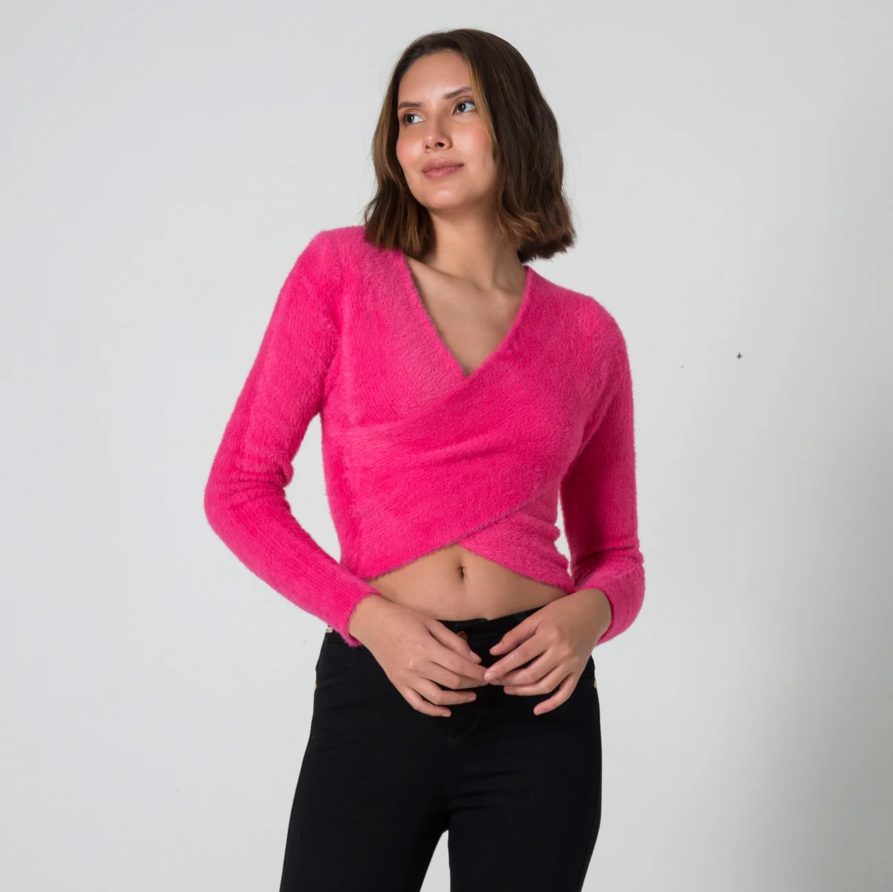 Buzo Madelyn corto cuello V, manga larga perfecto para combinar con tus looks casuales. Buzo para mujer con detalle en frente cruzado en cintura que le dan un toque de originalidad y estilo.