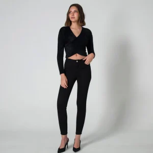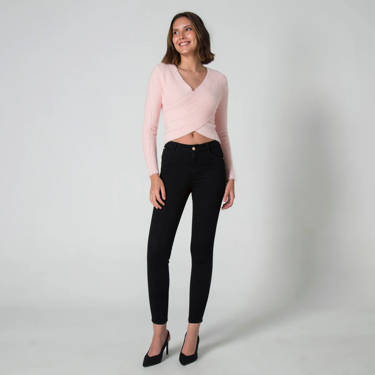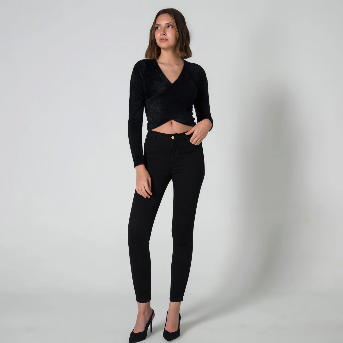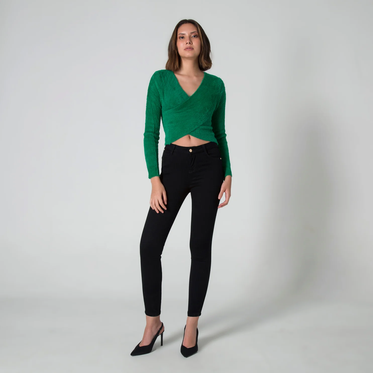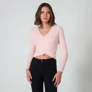 Buzo Madelyn corto cuello V, manga larga perfecto para combinar con tus looks casuales. Buzo para mujer con detalle en frente cruzado en cintura que le dan un toque de originalidad y estilo.