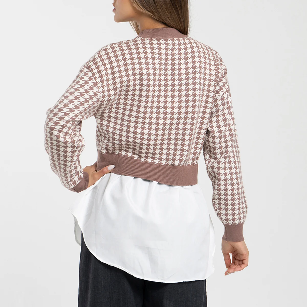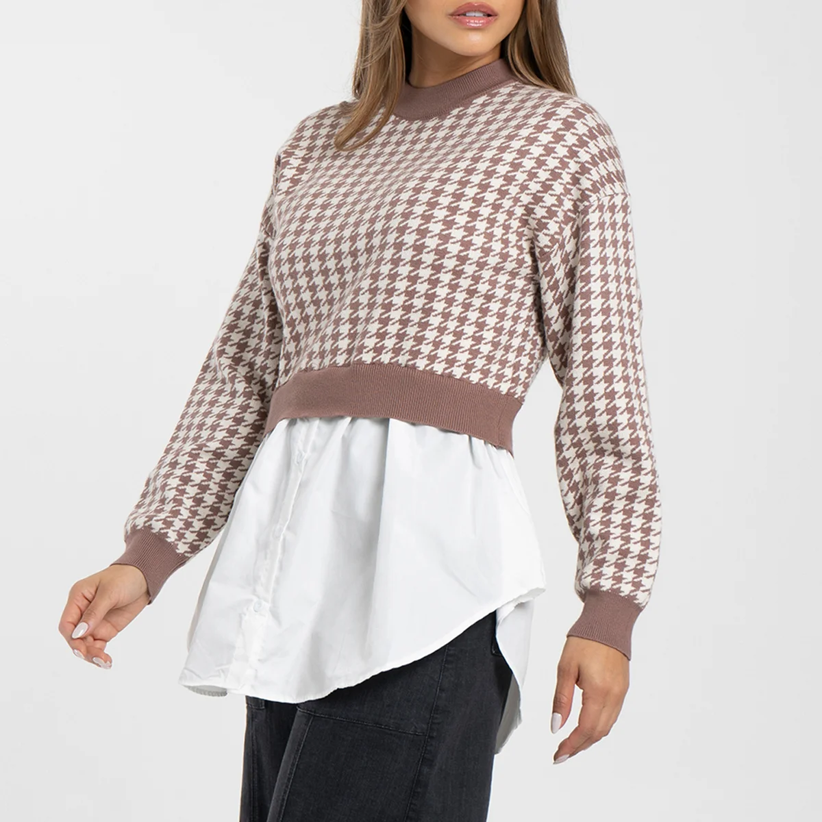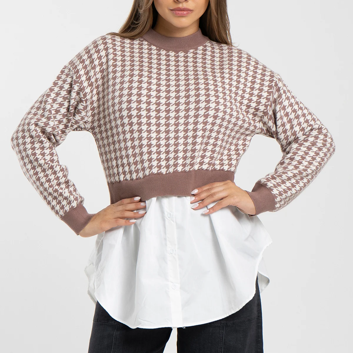 Buzo tejido gallineto Valkiria cuello alto, manga larga con puños, cuello y pretina terminan en rib unicolor