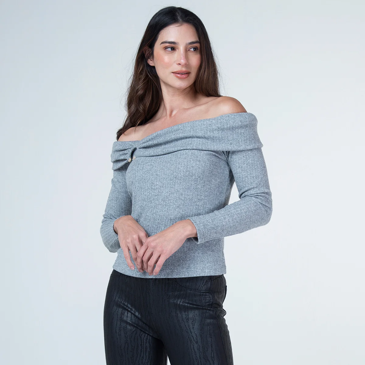 Buzo Benvenuti presenta una silueta slim que se ajusta perfectamente al cuerpo, realzando la figura de quien lo lleva. Su escote Bardot, que deja los hombros al descubierto, añade un toque de elegancia y sensualidad, ideal para ocasiones tanto casuales como más formales. Además, cuenta con un atractivo detalle de herraje en el costado, que aporta un elemento distintivo y moderno al diseño. Fabricado con materiales de alta calidad, este buzo combina comodidad y estilo, convirtiéndolo en una excelente opción para completar cualquier atuendo.
