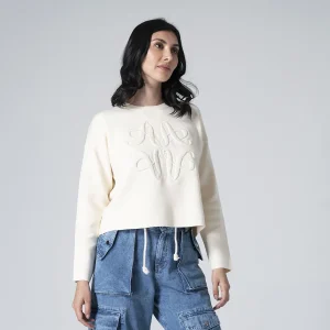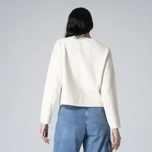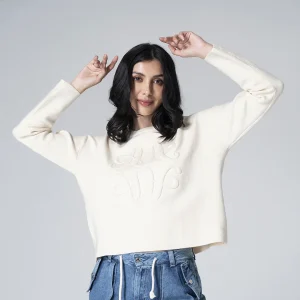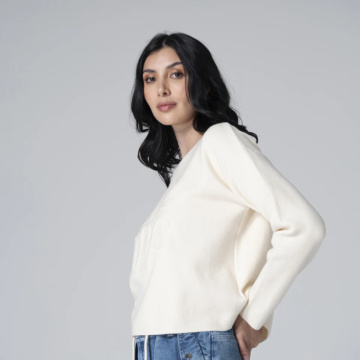 Buzo tejido Rosalie manga larga estilo oversize que ofrece comodidad y tendencia. Cuenta con un cuello redondo clásico y destacado, con un detalle de diseño en la parte frontal a la altura del pecho que aporta un toque distintivo y moderno. Ideal para un look casual y relajado, combina perfectamente con diferentes estilos y es perfecto para días frescos.