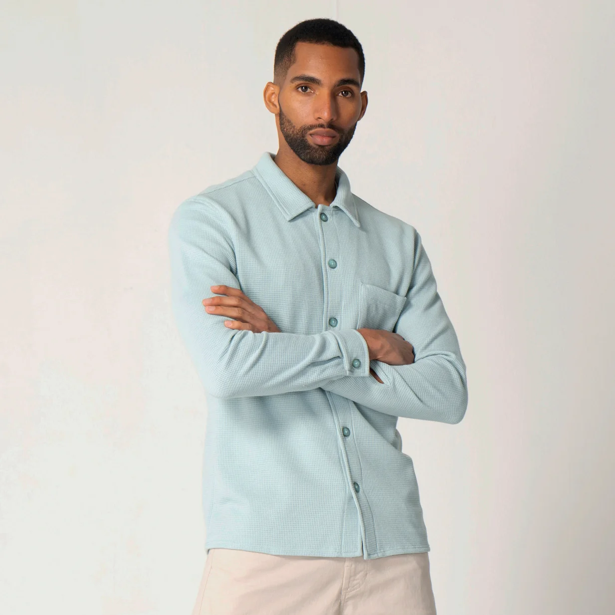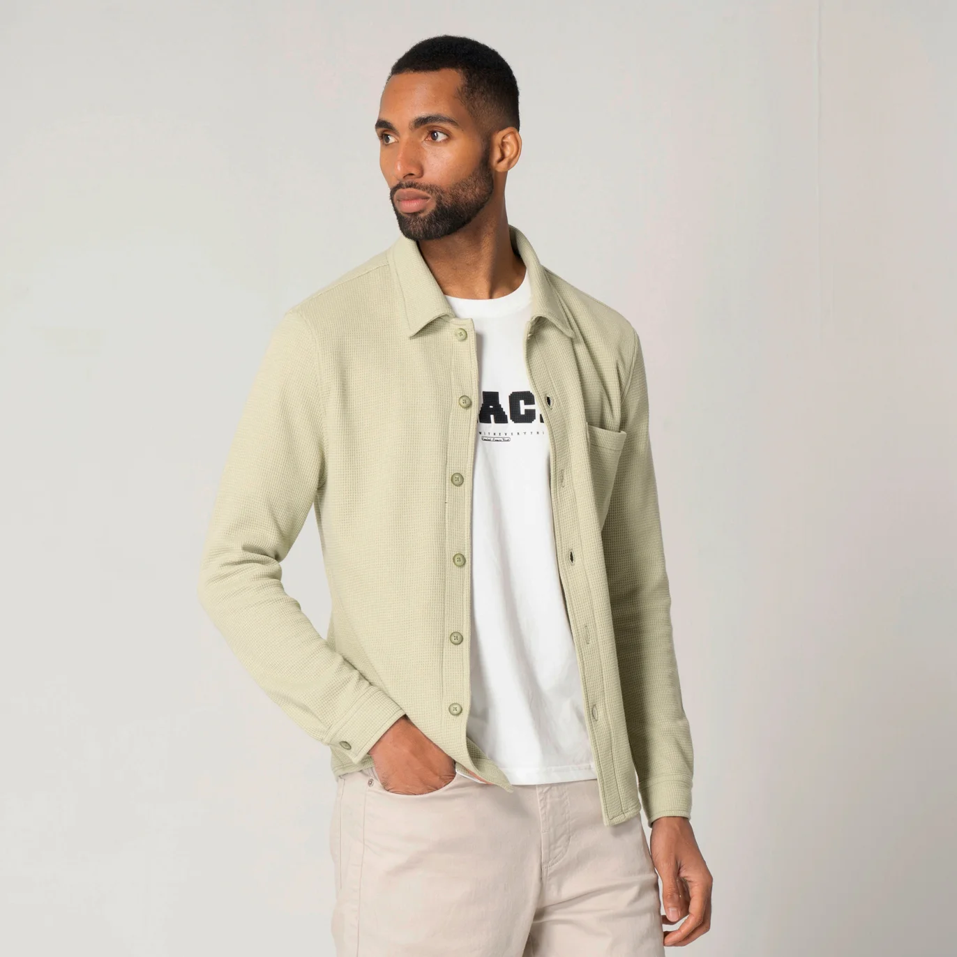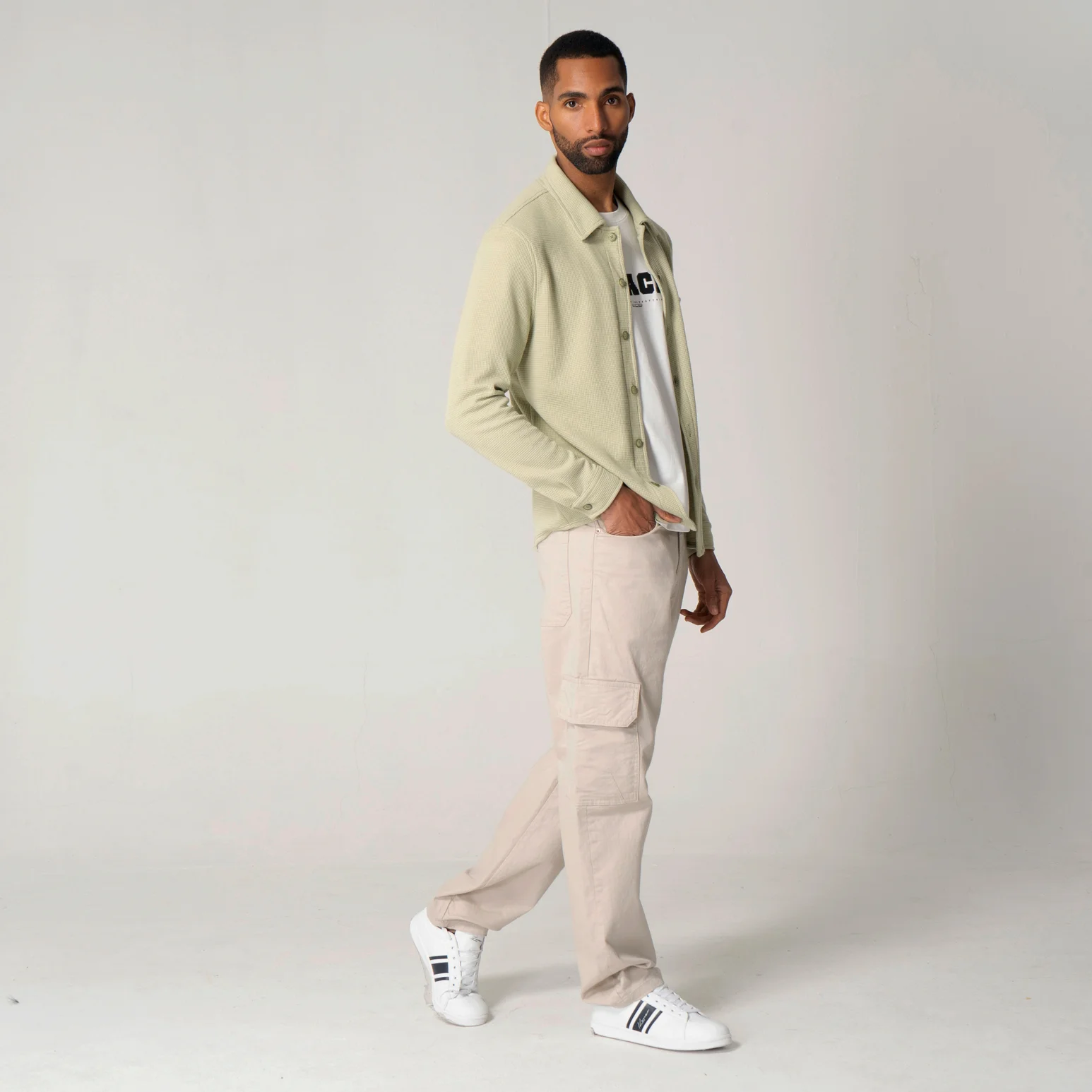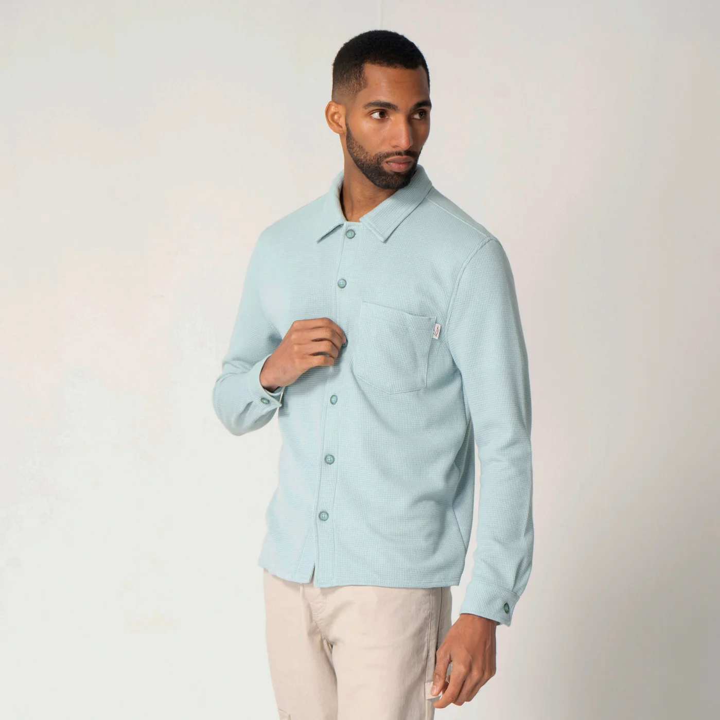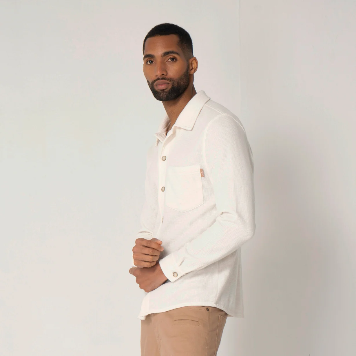 Camichaqueta Bass silueta slim es una prenda elegante y moderna que destaca por su diseño sofisticado. Su cuello camisero aporta un toque clásico, mientras que las mangas largas con puño de cruce de botón ofrecen un detalle distintivo que realza su estilo.