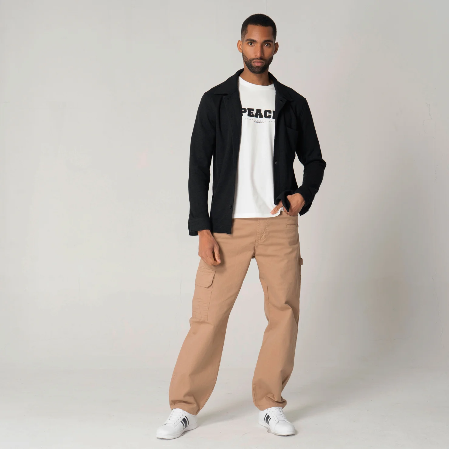 El sistema de cierre de cruce de botón no solo asegura un ajuste cómodo, sino que también añade un elemento visual atractivo. En la parte superior, el bolsillo tipo parche proporciona funcionalidad y un acento adicional al diseño. Ideal para combinar con diferentes outfits, esta camichaqueta es perfecta para quienes buscan un look chic y contemporáneo.