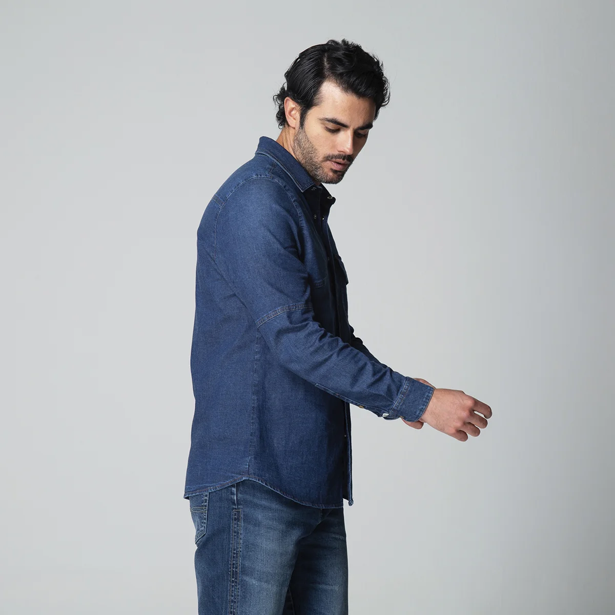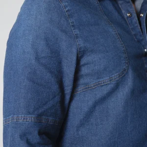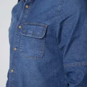 Camisa Dallas en denim combina estilo y funcionalidad. Está diseñada con un cuello sport que aporta un toque casual y moderno, ideal para usar en diferentes ocasiones. Su manga larga termina en un puño de cierre con broche, ofreciendo un ajuste cómodo y seguro. En la parte delantera, presenta un bolillo tipo parche con cierre de tapa que añade un detalle distintivo y práctico. El sistema de cierre de toda la camisa es mediante broches, lo que facilita su uso y aporta un acabado limpio y elegante. Perfecta para quienes buscan una prenda versátil, resistente y con un estilo clásico en denim.