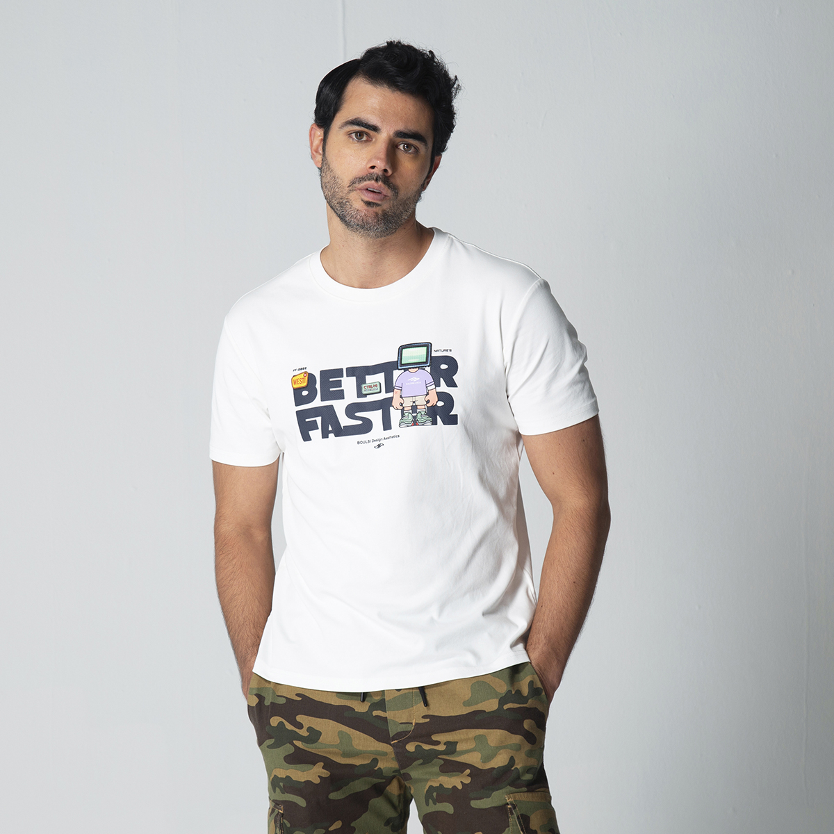 Camiseta Westy se adapta cómodamente al cuerpo, ofreciendo libertad de movimiento. Su cuello redondo le otorga un toque clásico, mientras que las mangas cortas brindan frescura y versatilidad para el uso diario. En la parte frontal, destaca un atractivo estampado en contraste que añade un elemento visual distintivo, perfecto para quienes buscan un estilo moderno y casual. Ideal para combinar con jeans o shorts, esta camiseta es una opción perfecta para vestir en diversas ocasiones.