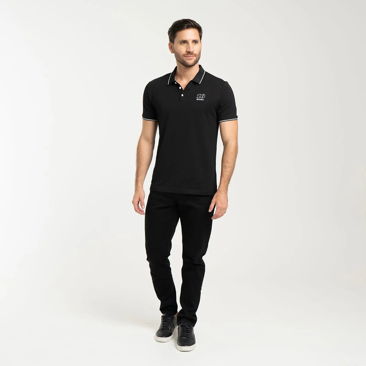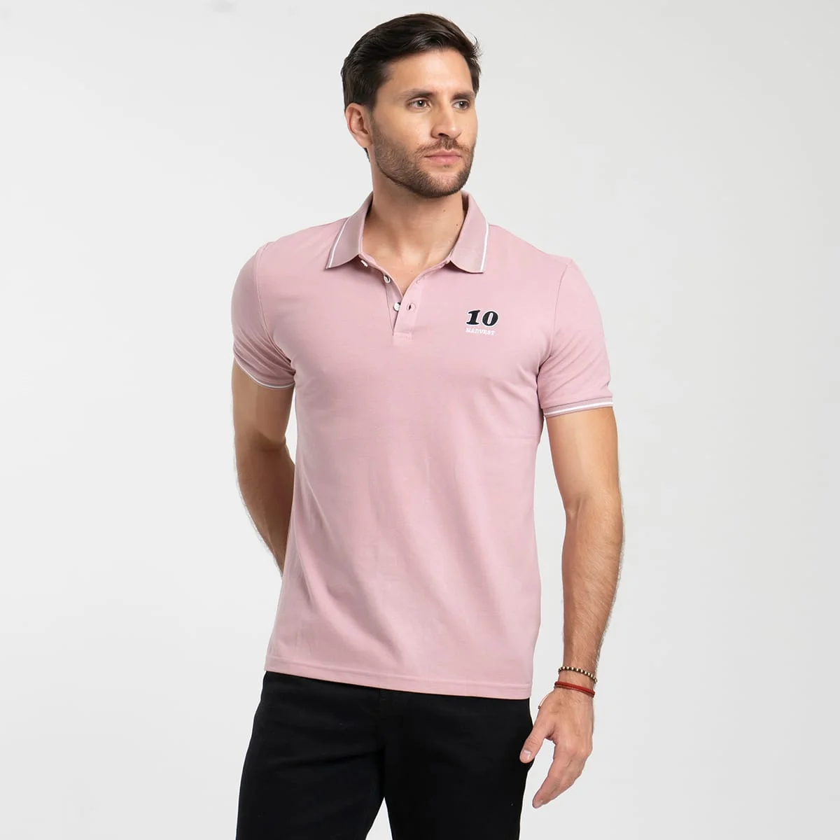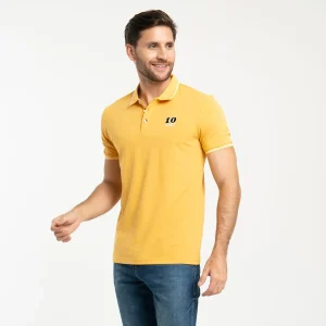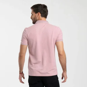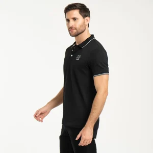 Camiseta para hombre Nash tipo polo, manga corta, está prenda cuenta con estampado localizado en costado izquierdo, su cuello y puños son en tejido de rid con líneas en contraste.