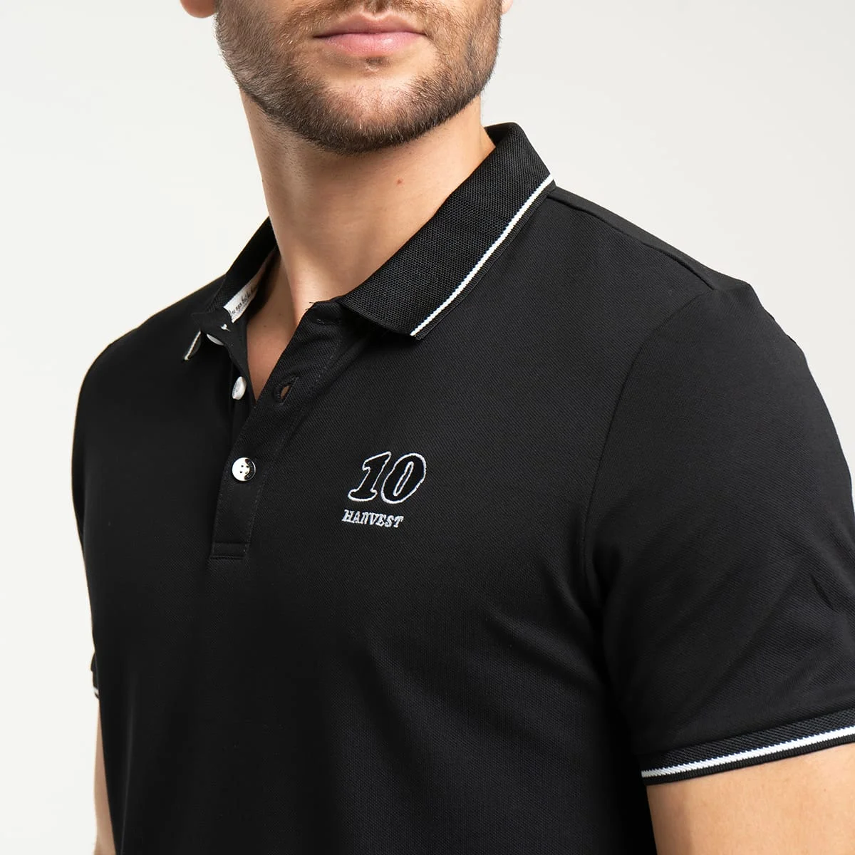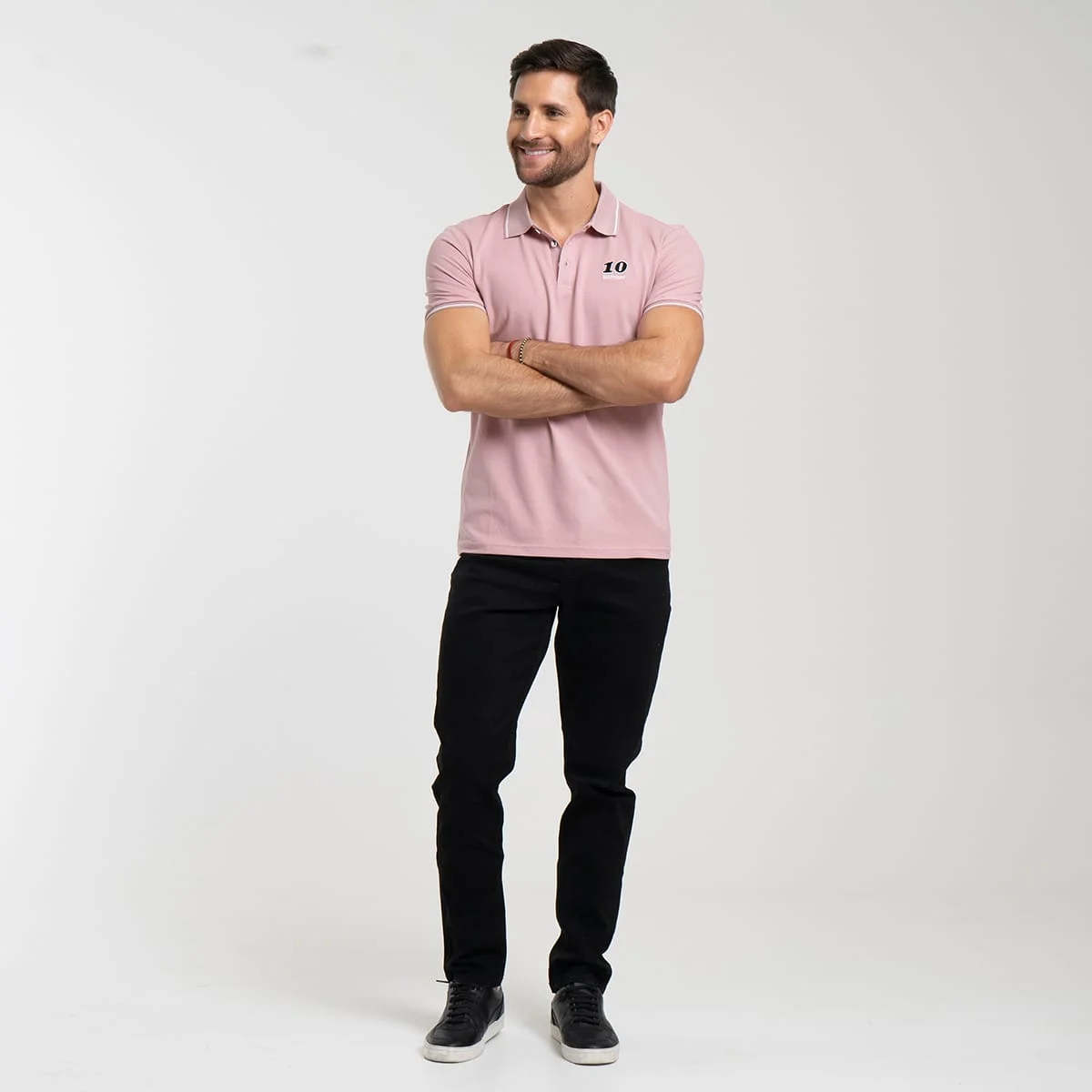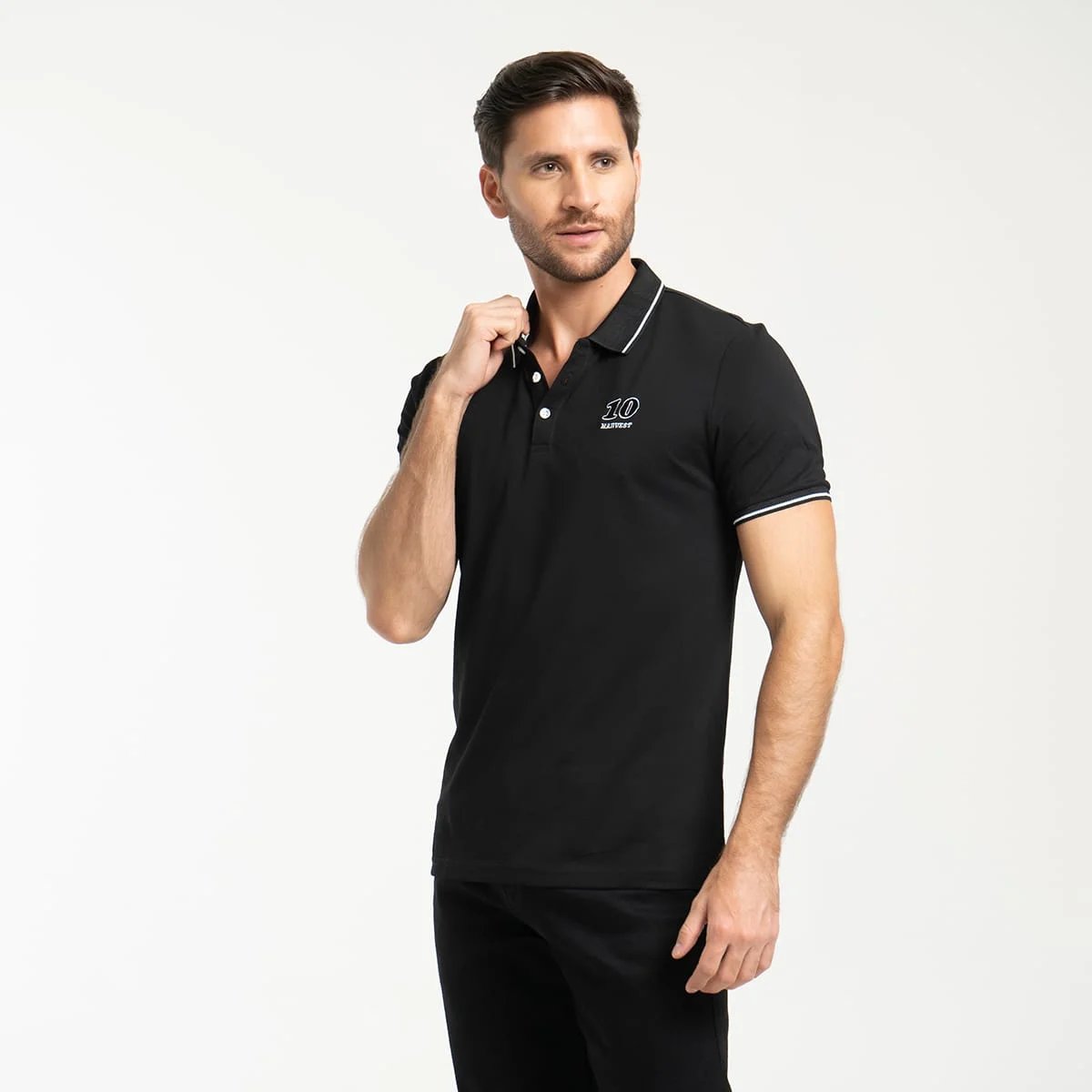 Camiseta para hombre Nash tipo polo, manga corta, está prenda cuenta con estampado localizado en costado izquierdo, su cuello y puños son en tejido de rid con líneas en contraste.