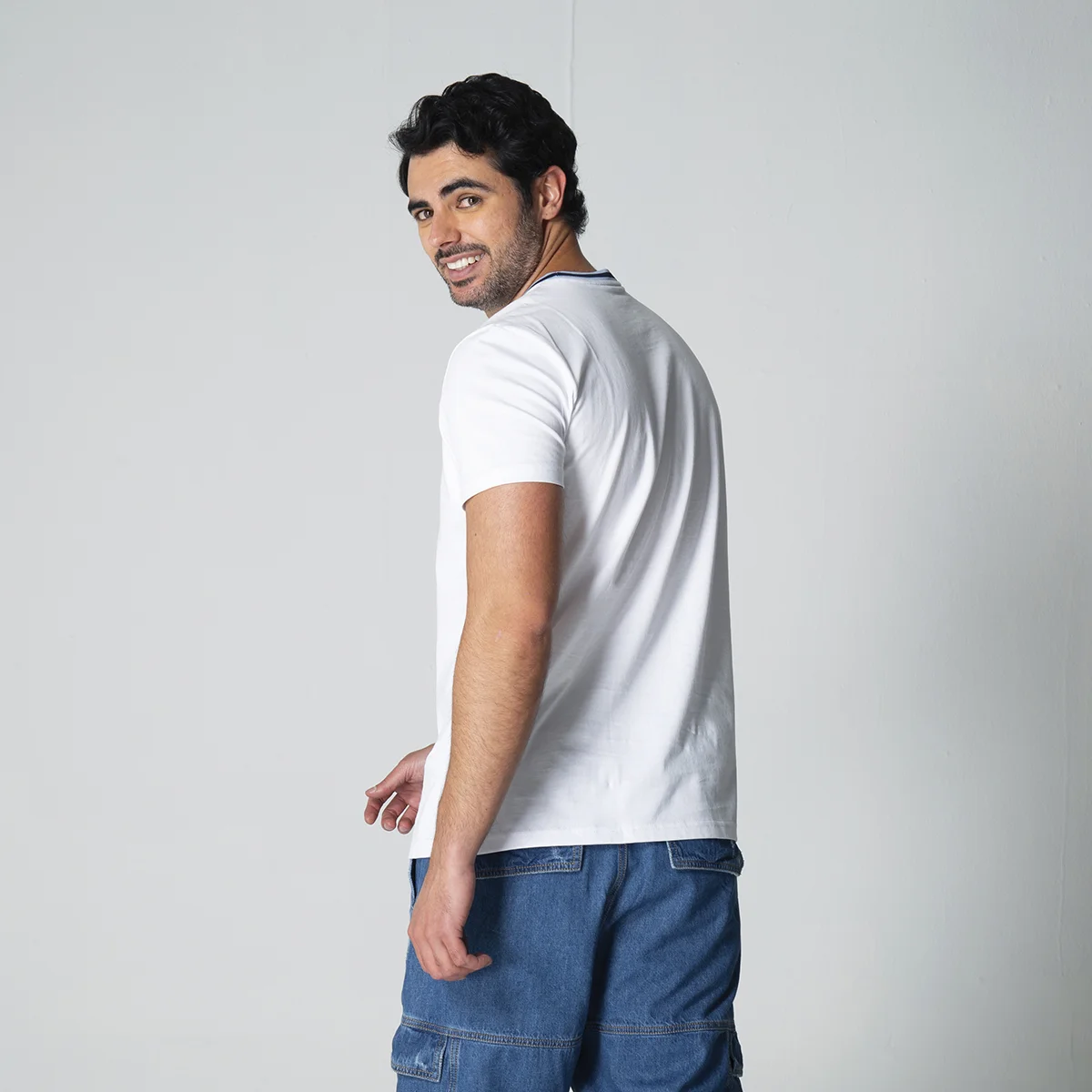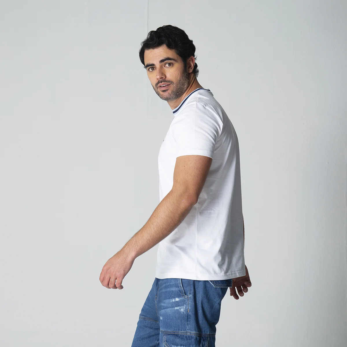 Camiseta Guiose cuello redondo un diseño clásico y versátil, ideal para un estilo casual y sofisticado. Su silueta regular ofrece comodidad y un ajuste favorecedor para diferentes tipos de cuerpo, cuenta con mangas cortas que la hacen perfecta para uso diario. El cuello en rib añade un toque de textura y durabilidad, además de mantener su forma con el tiempo. Esta camiseta básica para hombre es una prenda que combina elegancia y sencillez, perfecta para completar cualquier outfit con un toque de lujo discreto.