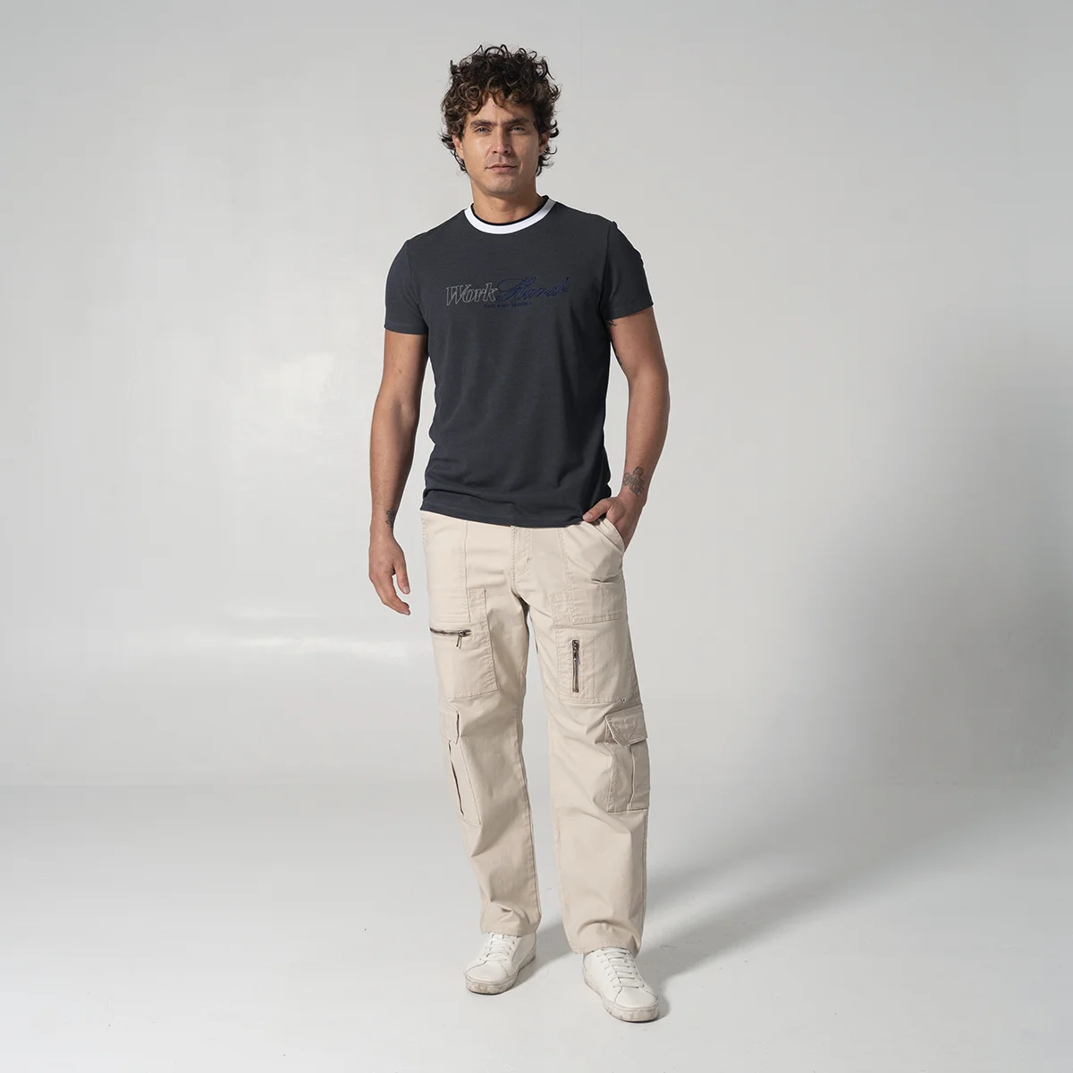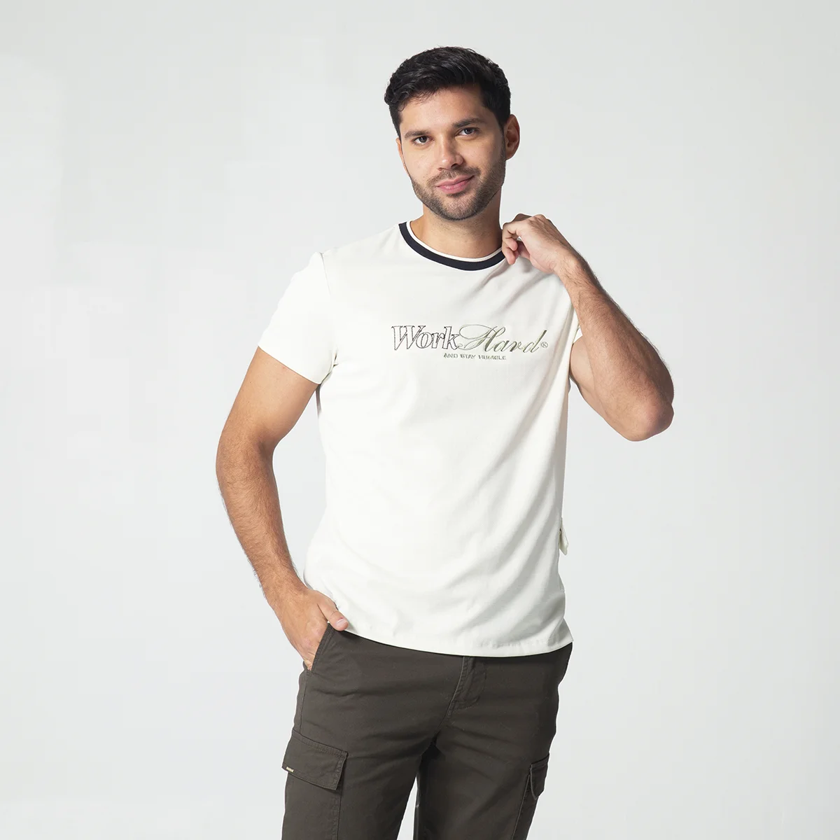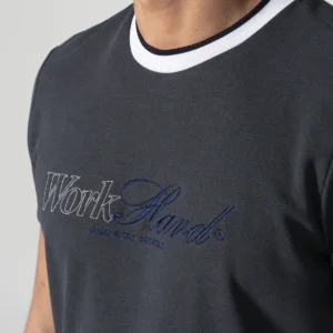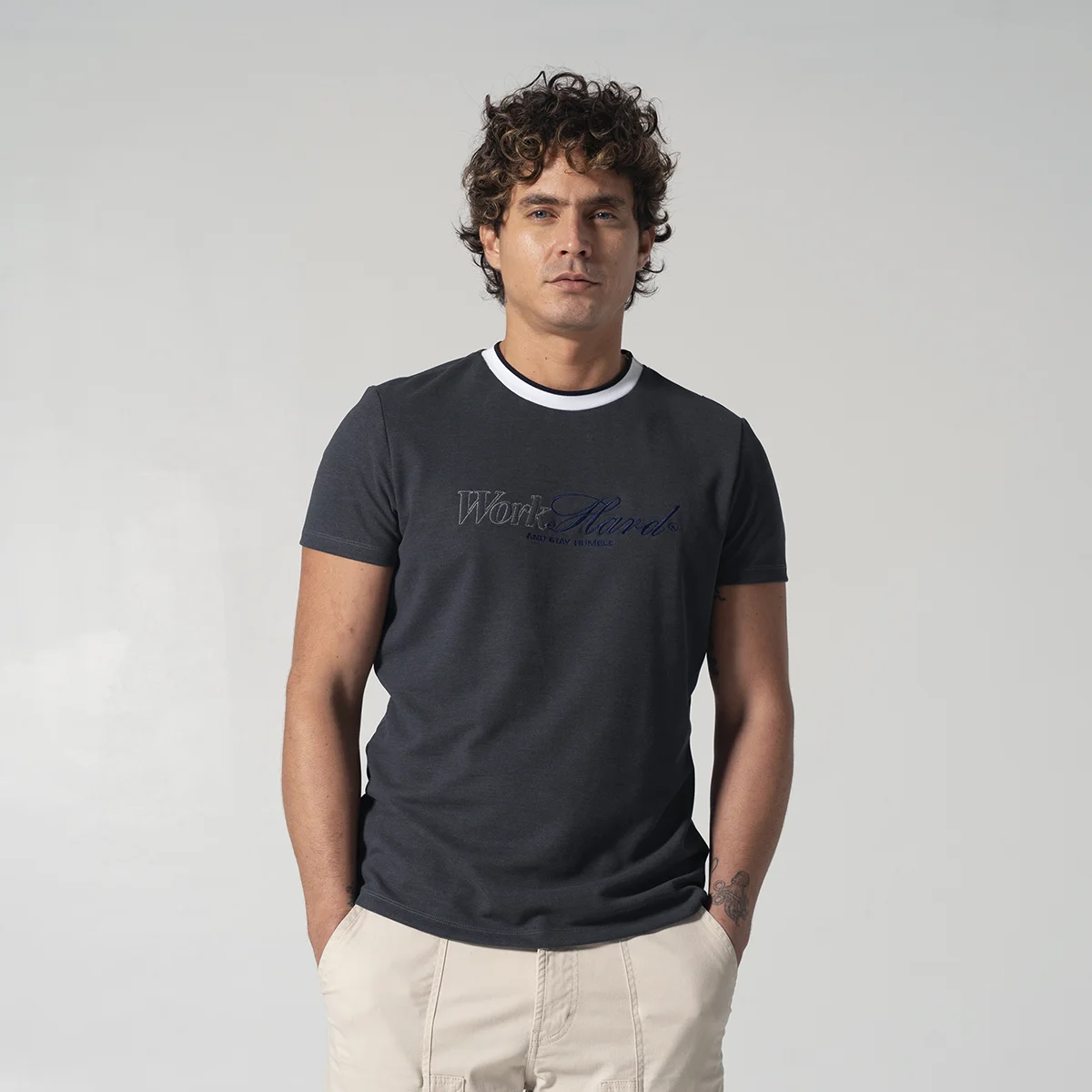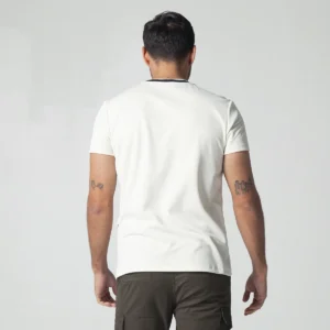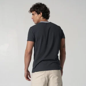 camiseta Nine para hombre silueta slim fit, diseño atemporal presenta un cómodo cuello redondo y manga corta, perfecta para cualquier ocasión casual. Cuenta con detalle distintivo de bordado a la altura del pecho en el delantero, añadiendo un toque de exclusividad a esta prenda esencial.