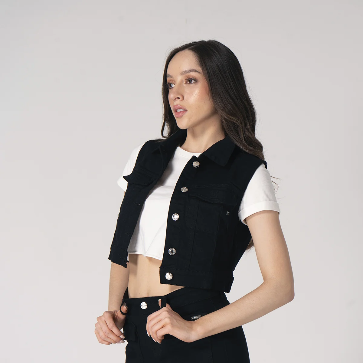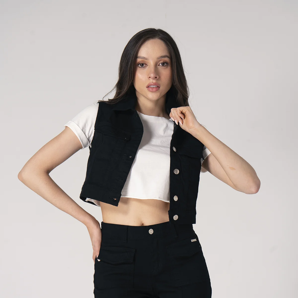 Chaleco Provenza en denim es una prenda versátil y moderna, diseñada con una silueta slim que resalta la figura. Su confección en denim le otorga un toque casual y duradero, ideal para una variedad de ocasiones.