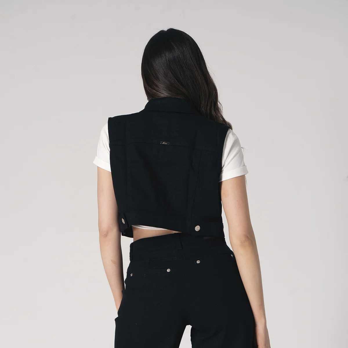 En la parte posterior, el chaleco presenta charreteras que aportan un toque de distinción y un cierre de botón que asegura un ajuste perfecto. Este diseño, que mezcla elementos clásicos con detalles contemporáneos, lo convierte en un básico ideal para cualquier armario. Perfecto para combinar con camisetas, camisas o incluso vestidos, el chaleco Provenza en denim es una opción chic y práctica para cualquier temporada.