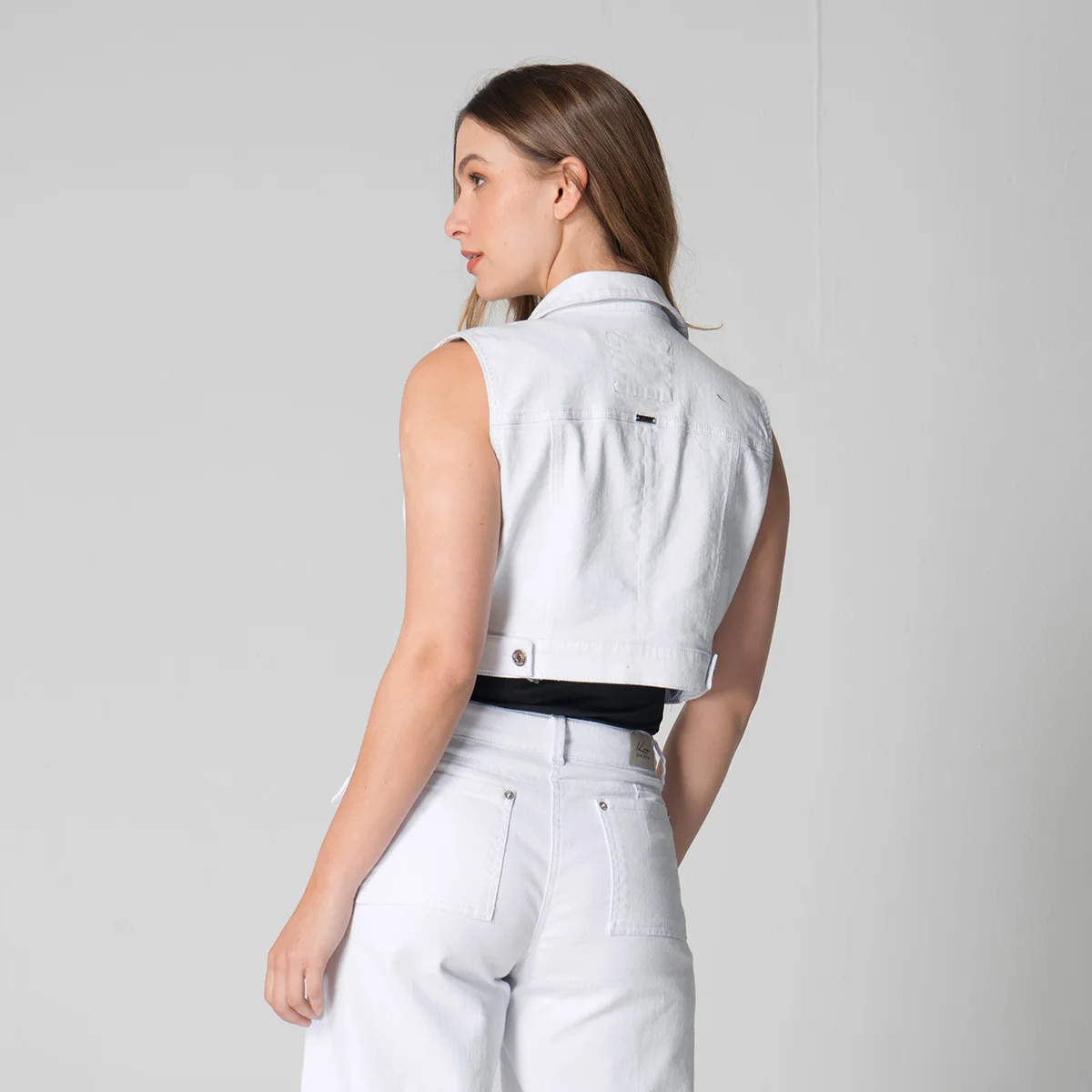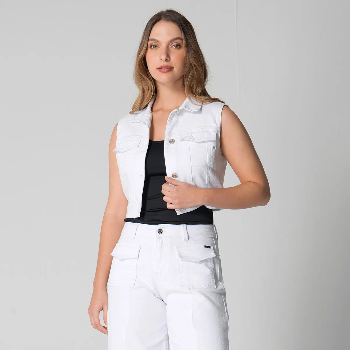 Chaleco Villana en denim presenta una silueta Slim que realza la figura de quien lo lleva. Su diseño combina funcionalidad y estilo, siendo una prenda versátil para cualquier ocasión. En la parte frontal, el chaleco cuenta con un sistema de cierre de botonadura que proporciona un ajuste seguro y cómodo. En la parte superior, se han incorporado bolsillos con cierre de tapa, ideales para llevar pequeños objetos de manera práctica. Es perfecto para complementar cualquier atuendo, ya sea casual o más formal, convirtiéndose en un imprescindible en el armario de moda.