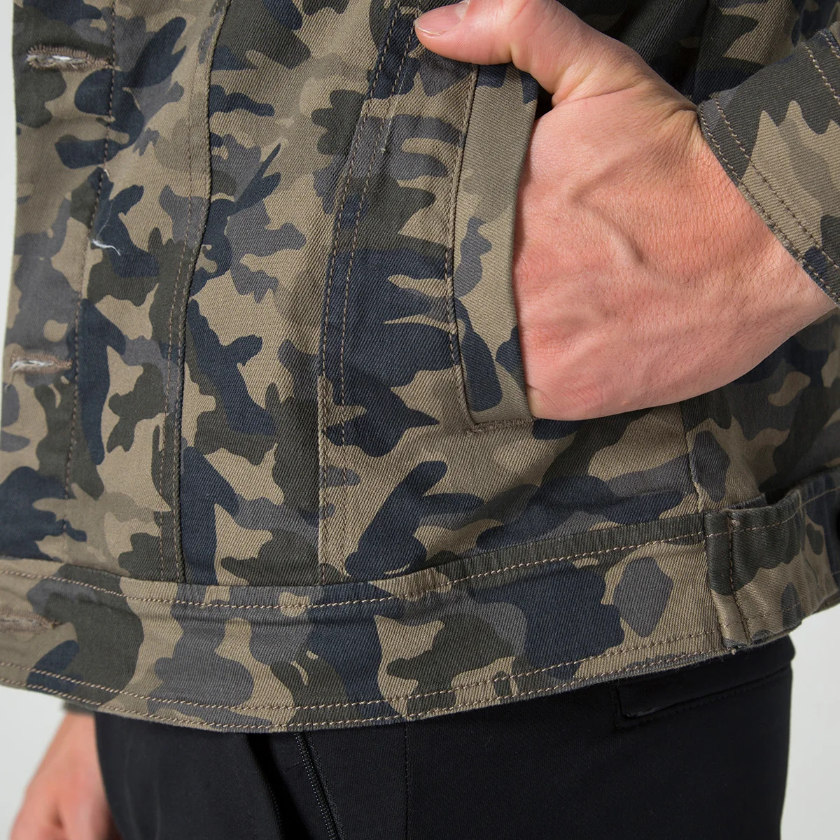 En su parte frontal, presenta un bolsillo en el pecho, ideal para llevar pequeños objetos, además de contar con prácticos bolsillos laterales que ofrecen un espacio adicional para guardar tus pertenencias. Su sistema de cierre de botonadura asegura un ajuste perfecto y permite un fácil acceso, haciendo de esta chaqueta una opción práctica y estilosa.