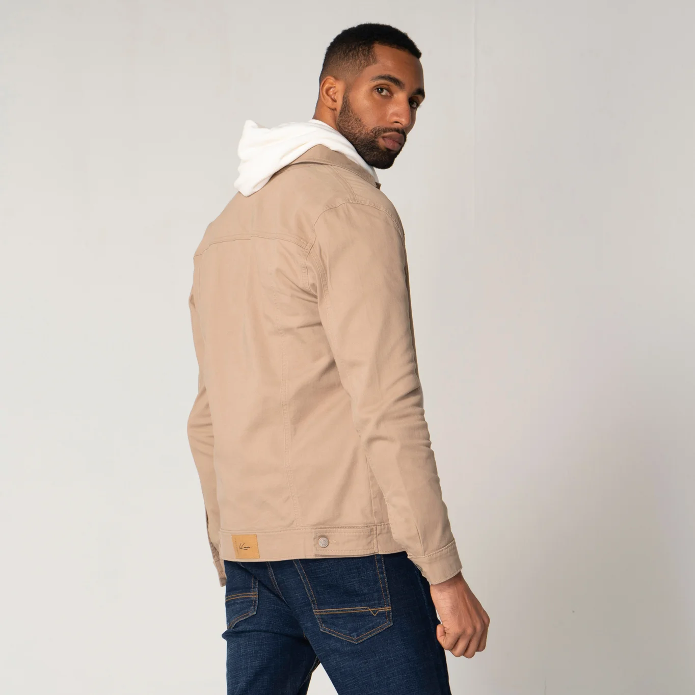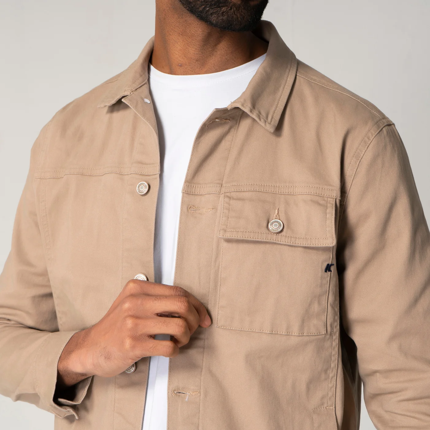 En su parte frontal, presenta un bolsillo en el pecho, ideal para llevar pequeños objetos, además de contar con prácticos bolsillos laterales que ofrecen un espacio adicional para guardar tus pertenencias. Su sistema de cierre de botonadura asegura un ajuste perfecto y permite un fácil acceso, haciendo de esta chaqueta una opción práctica y estilosa.