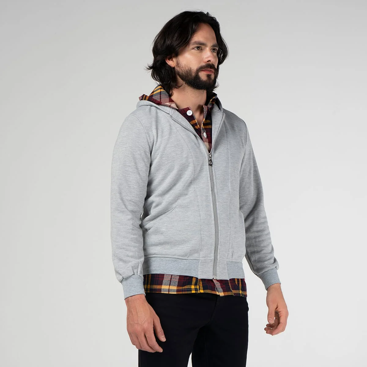 Chaqueta Harry ideal para usar en días fríos y lluviosos, manga larga, con capota y canal de cordón ajustable, Su sistema de cierre es de cremallera brindando comodidad, en la parte frontal cuenta con bolsillos tipo canguro, y peto tipo sobre camisa de cuadros con capota, esta chaqueta para hombre Harry es perfecta para cualquier ocasión informal. ¡No dejes pasar la oportunidad de añadirla a tu armario!