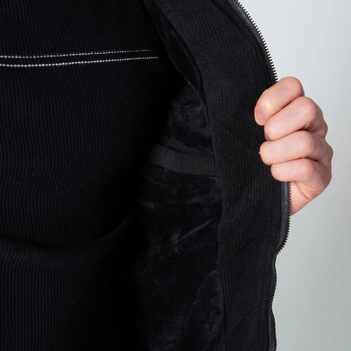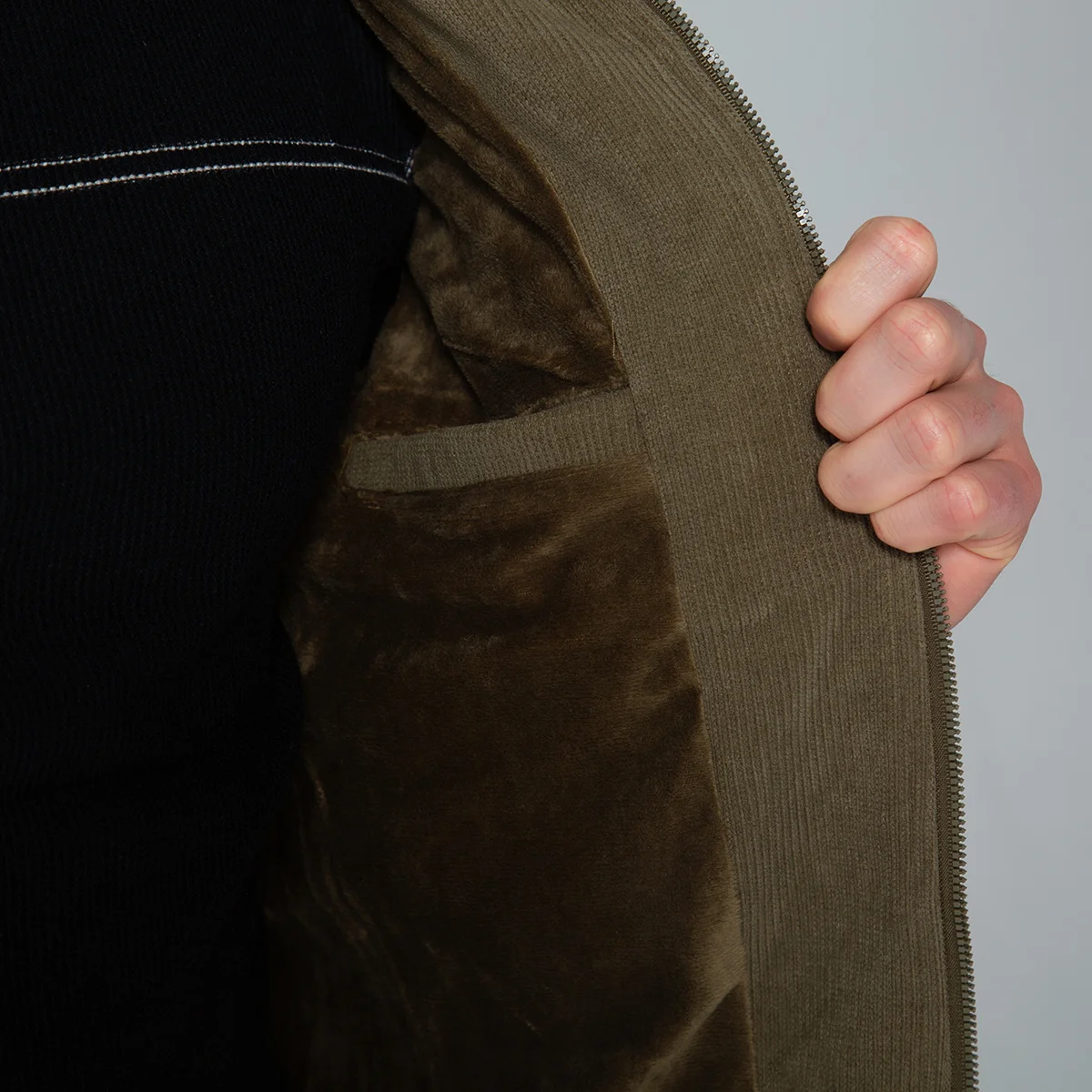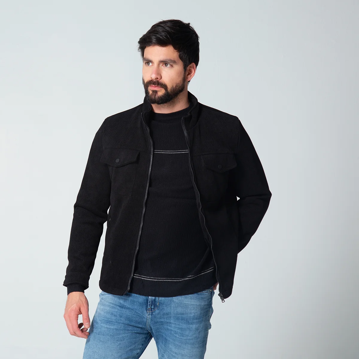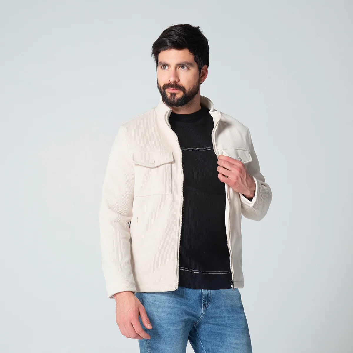 En el frontal, la chaqueta está equipada con bolsillos tipo parche, cubiertos por una tapa, que se sitúan a la altura del pecho, perfectos para llevar objetos pequeños. Además, incluye bolsillos inferiores tipo ribete con cierre en cremallera, que añaden un detalle estilizado y son prácticos para mantener las manos calientes o guardar pertenencias, el cierre de la chaqueta es de cremallera, lo que facilita ponerla y quitarla, además de ofrecer una protección adicional contra el viento. Esta chaqueta para hombre es ideal para quienes buscan una prenda que se adapte a diversas situaciones con elegancia.