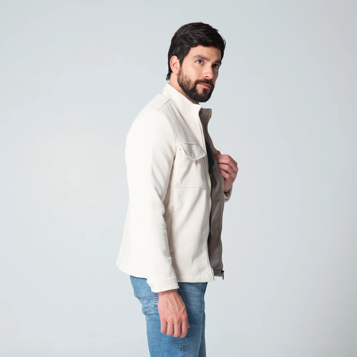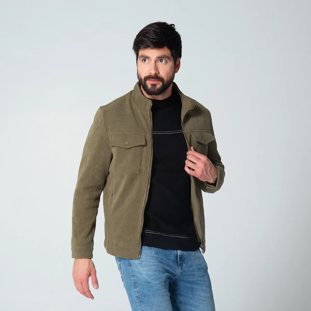 Chaqueta Going en pana es una prenda funcional, ideal para cualquier ocasión. Su diseño se caracteriza por un cuello tipo sport que le otorga un toque moderno y casual. Las mangas largas cuentan con una terminación de puño ajustable con broche, brindando comodidad.