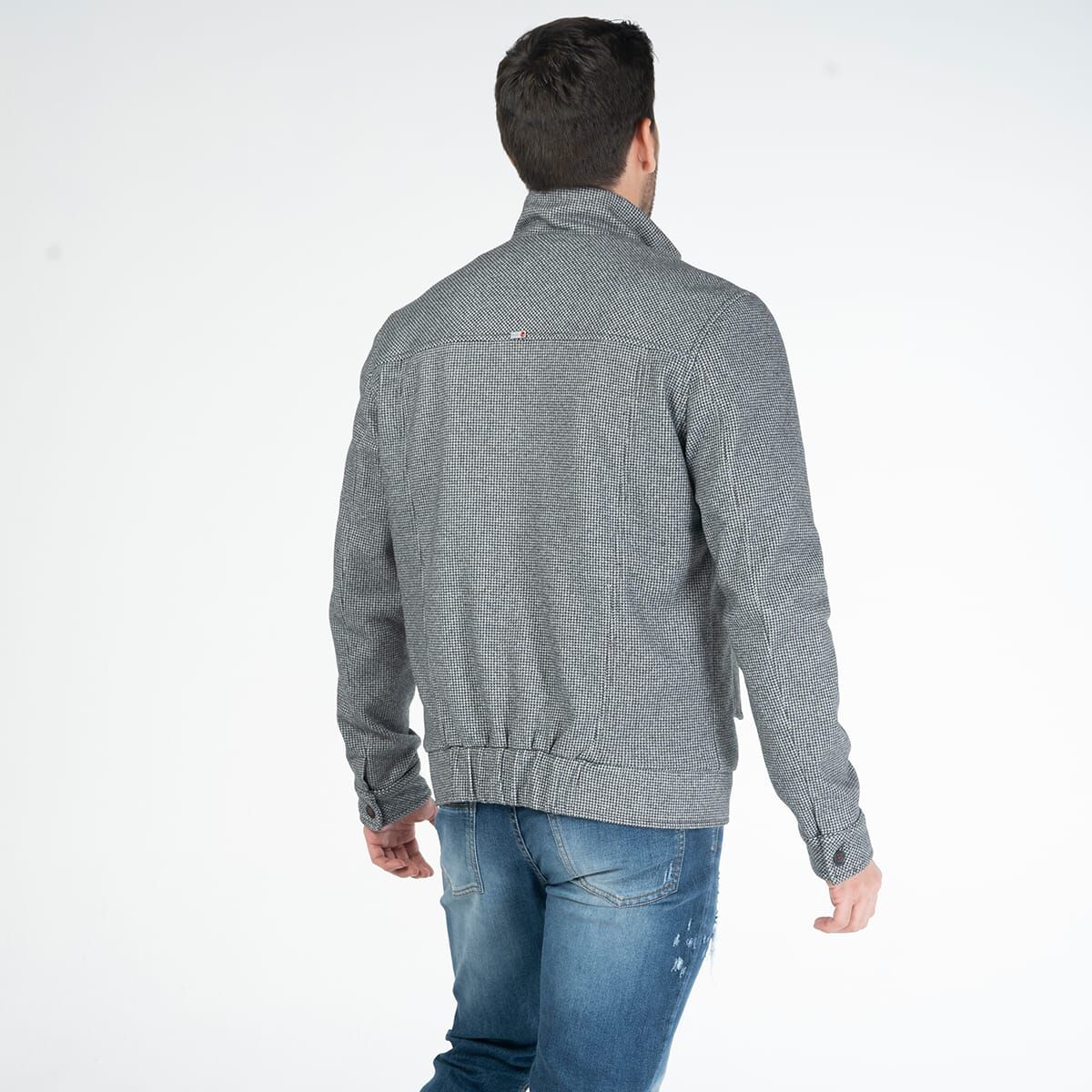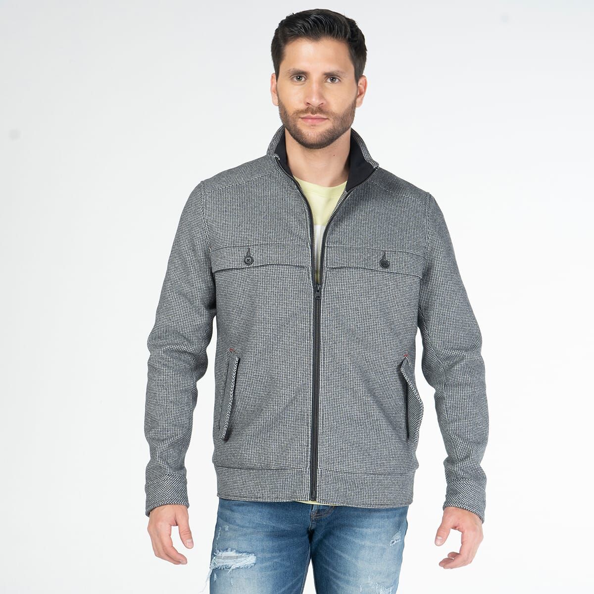 Chaqueta Resort en paño, cuello alto con detalle de rib por la parte interna, manga larga terminada con puño de cierre de botòn. Su parte fronta a la altura del pecho tiene bolsillo de cierre de botòn y por costados tiene bolsillos de ribete con cierre de tapa. Su sistema de cierre frontal es de cremallera. Su posterior cuenta con almilla y detalle de elastico en pretina por centro atras.