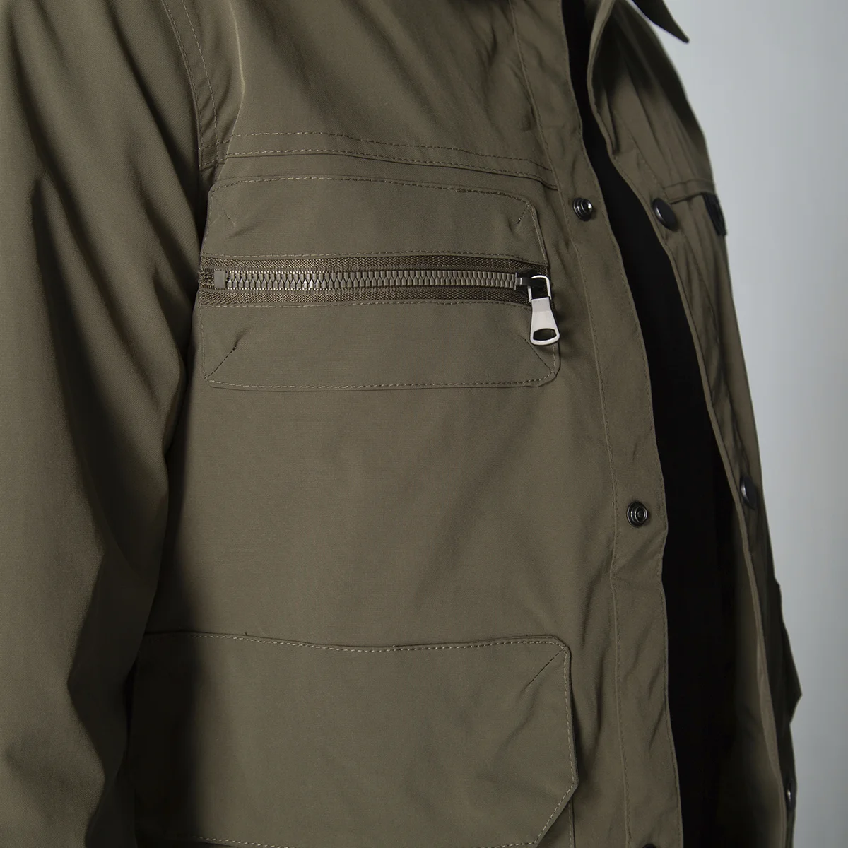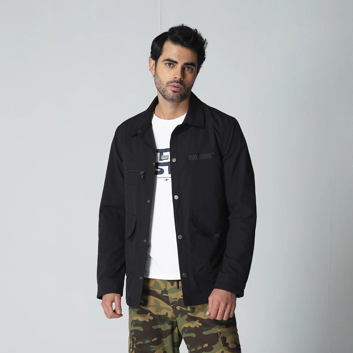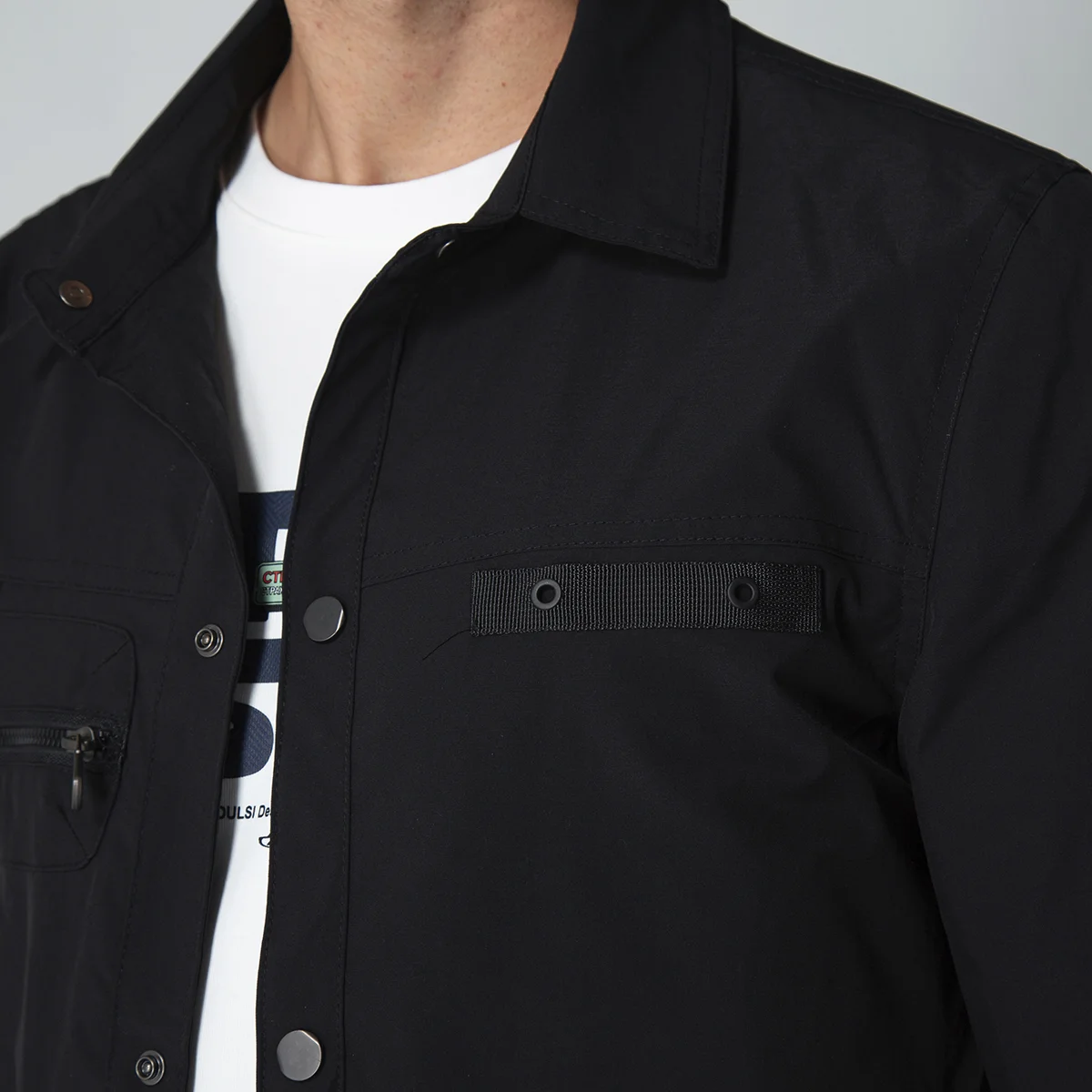 Chaqueta Moscú combina estilo y funcionalidad. Cuenta con un cierre delantero de broches que facilita su uso y seguridad. En la parte frontal, presenta bolsillos a la altura del pecho con cierre de cremallera, ideales para guardar objetos pequeños de manera segura, además de bolsillos con solapa para mayor comodidad. Sus mangas largas ofrecen protección contra el viento y el frío, y el ajuste con broches en las mangas permite adaptarla perfectamente a tu talle. Es una prenda versátil, perfecta para un look urbano y práctico.