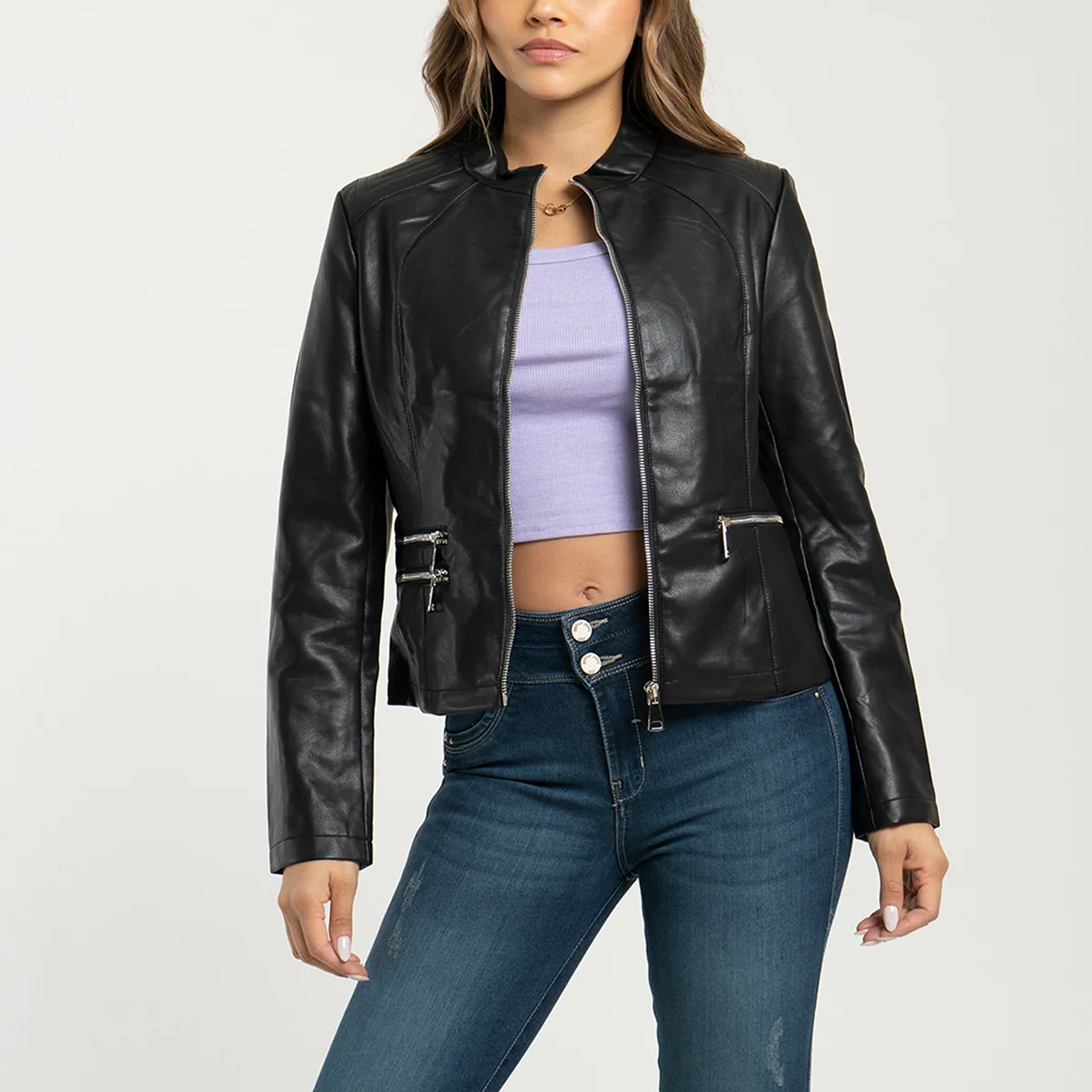 Las mangas largas añaden calidez y son perfectas para climas frescos. En la parte frontal, la chaqueta está equipada con bolsillos con cierre de cremallera, que ofrecen seguridad para llevar objetos personales. Un detalle destacado son los cortes en los hombros, que aportan un toque moderno, complementado por un delicado bordado, que realza su estética y la convierte en una opción versátil para diversas ocasiones. Esta chaqueta para mujer es ideal para lucir tanto en un ambiente casual como en situaciones un poco más formales.