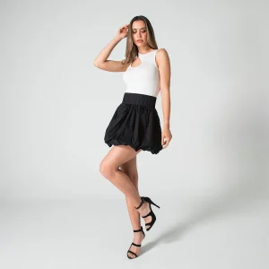 La falda Alexis y su diseño tipo globo le otorga una silueta volumétrica que aporta un toque moderno y fresco. Esta falda tiene un tiro medio, lo que la hace versátil para diferentes tipos de cuerpo y ocasiones. La pretina encauchada asegura un ajuste cómodo y una sujeción segura, permitiendo que la falda se adapte bien a la cintura sin restringir el movimiento haciéndola ideal para combinar con blusas ajustadas o camisetas casuales, así como con calzado que va desde zapatillas hasta tacones.