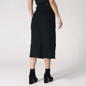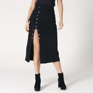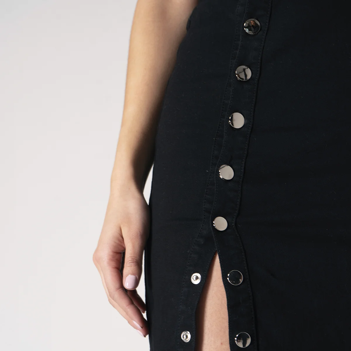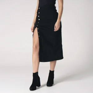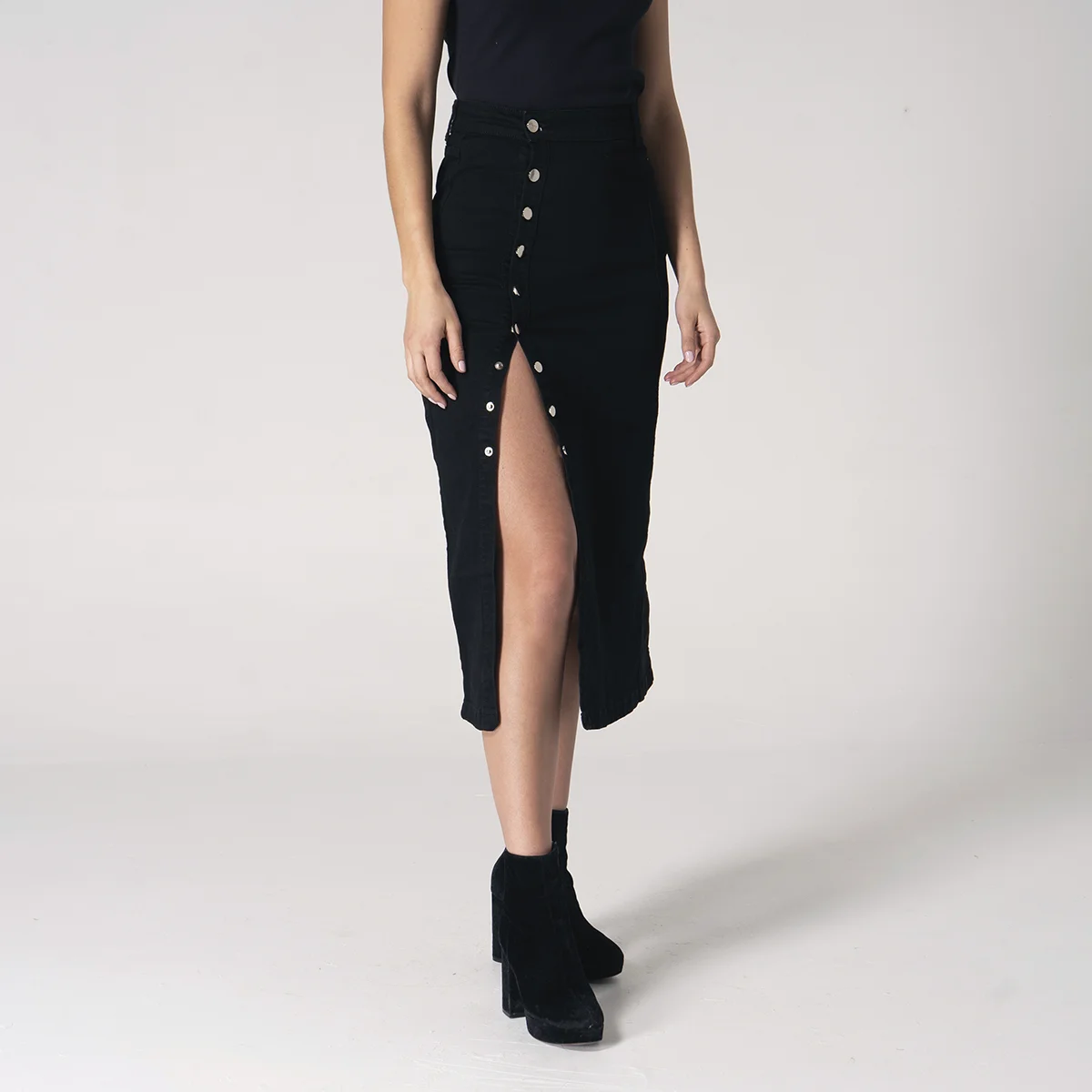 Falda Madison en denim es una pieza elegante y versátil que destaca por su silueta midi, ideal para diversas ocasiones. Su diseño incluye una pretina con un botón en la parte frontal, que añade un toque clásico y sofisticado. La abertura frontal no solo proporciona un detalle estético atractivo, sino que también ofrece comodidad y libertad de movimiento. El cierre de la falda se asegura mediante un broche, lo que garantiza un ajuste perfecto y una apariencia pulida. En la parte posterior, las pinzas de realce están diseñadas para acentuar la figura y proporcionar un corte favorecedor, que se adapta a diferentes tipos de cuerpo.