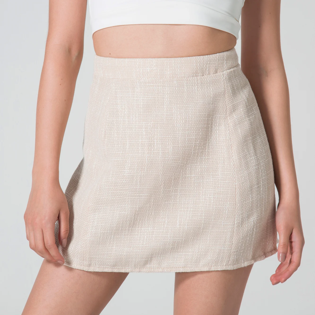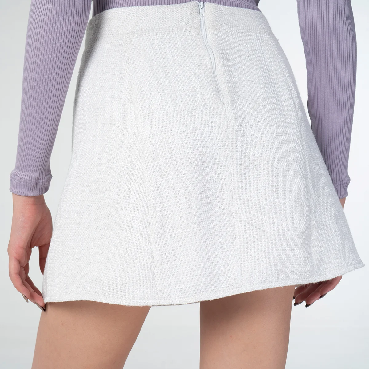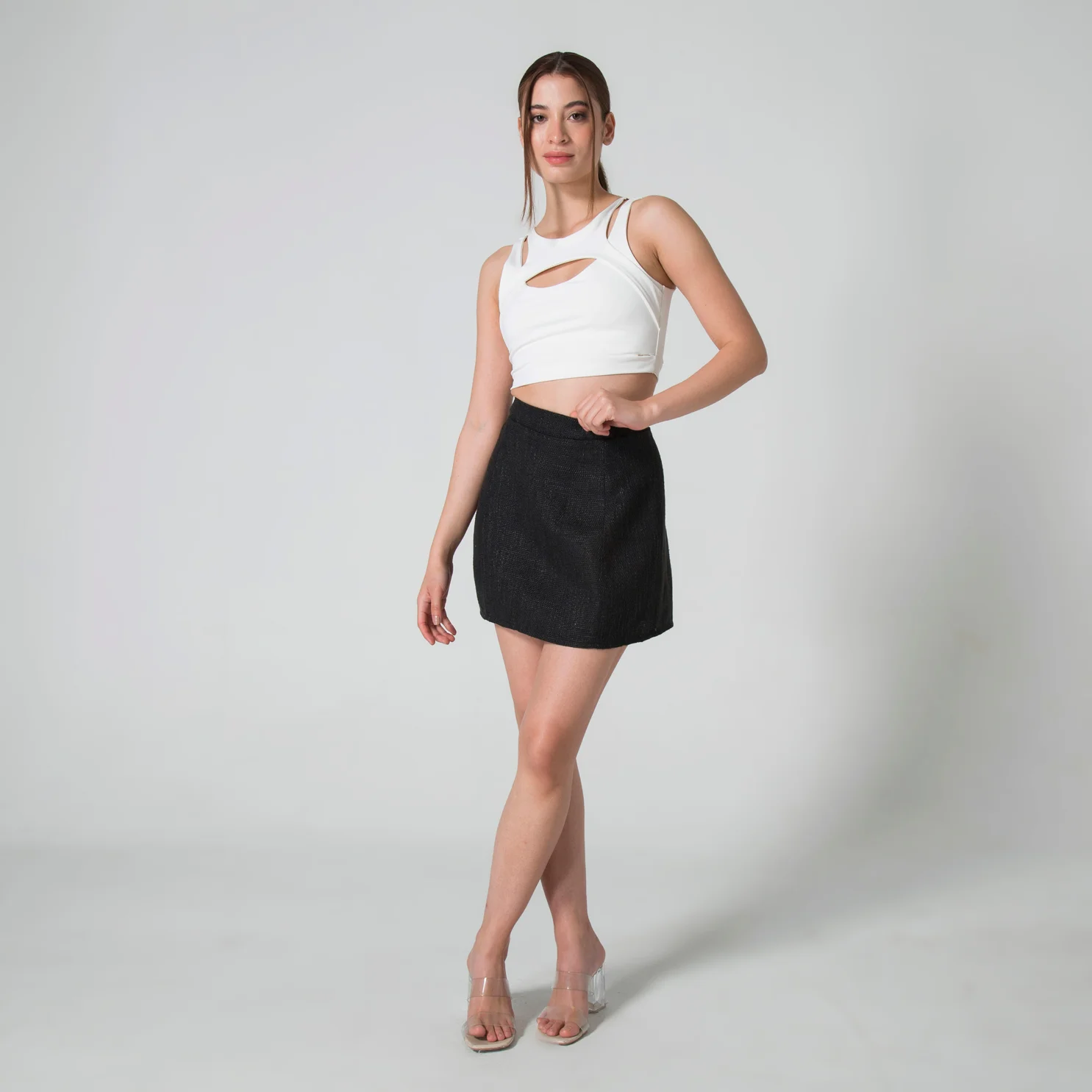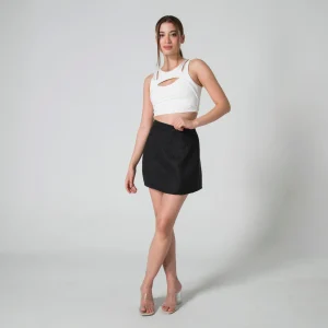Falda corta French silueta slim es una prenda moderna y elegante que se ajusta perfectamente al cuerpo, resaltando las curvas de manera favorecedora. Está diseñada para ofrecer un acabado sofisticado, ideal para diversas ocasiones, desde un día casual hasta una salida nocturna.