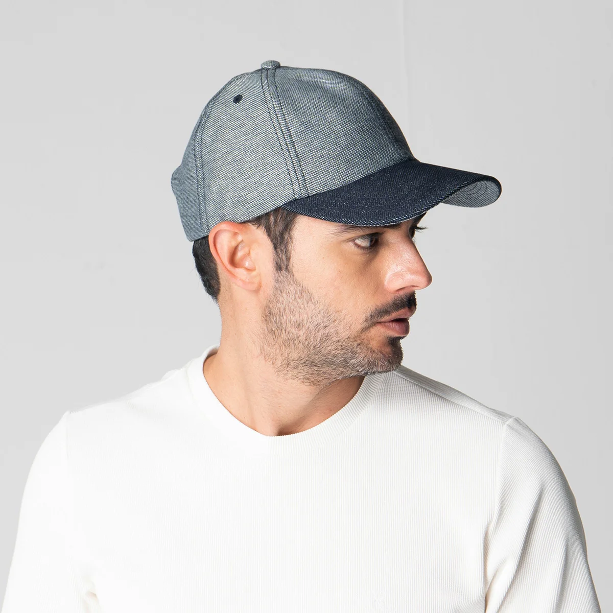 Gorra en denim. Es una cachucha con un diseño en contraste oscuro y claro, con un brillo la hace destacar por su elegancia y versatilidad porque puedes acomodarla a looks formales o mas casuales. ¡Completa tu outfit con esta gorra y luce destaca siempre en tus vacaciones!